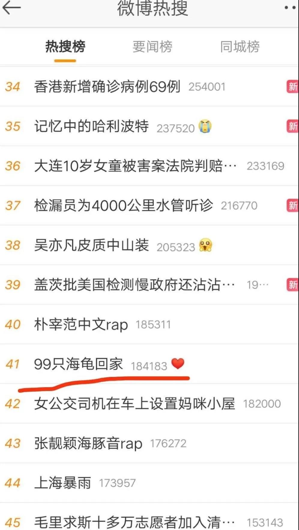 “99只海龟回家”上微博热搜