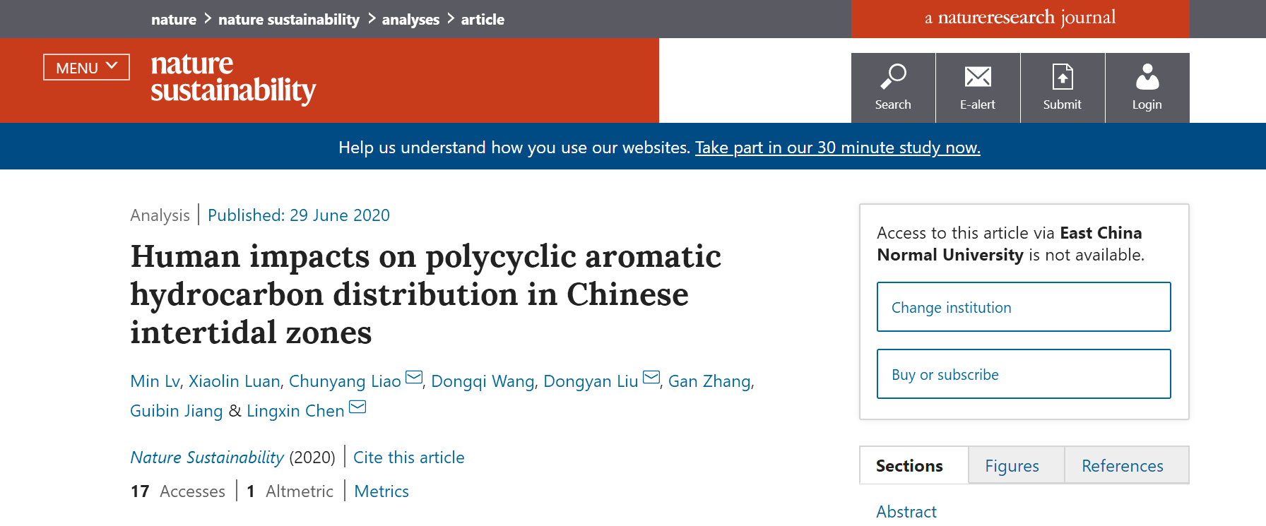 针对人类活动对河口泥滩环境中多环芳烃(PAHs)分布模式影响的不确定性,研究团队在干、湿两季收集了我国13个河口泥滩的沉积物样品,分析了其中的PAHs分布模式,并结合沉积物的理化性质、气候因素(温度和降水)以及34种经济社会指标(人口规模、工业结构、城市化水平等),进行了定量化的关系分析。结果发现人类活动类型对PAHs的分布模式起到关键作用,且存在特征差异,提出PAHs分布模式的特征可以考虑作为区域工业化和城市化状况的重要指标。该研究是刘东艳研究员与澳门永利皇宫官网入口地理科学学院的王东启教授、中国科学院烟台海岸带研究所、生态环境研究中心共同合作的,是刘东艳研究员主持的科技部基础调查专项 “我国典型潮间带沉积物本底及质量调查与图集编研”项(2014FY210600)中的重要研究成果之一。目前已在《Nature Sustainability》上发表。(阅读原文:URL: https://www.nature.com/articles/s41893-020-0565-y)
