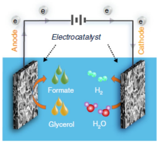 图3 甘油溶液中同时生产氢气和甲酸的示意图