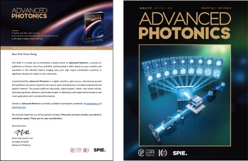 Advanced Photonics杂志主编邀请函(左图)和发表论文该期杂志封面图(右图)