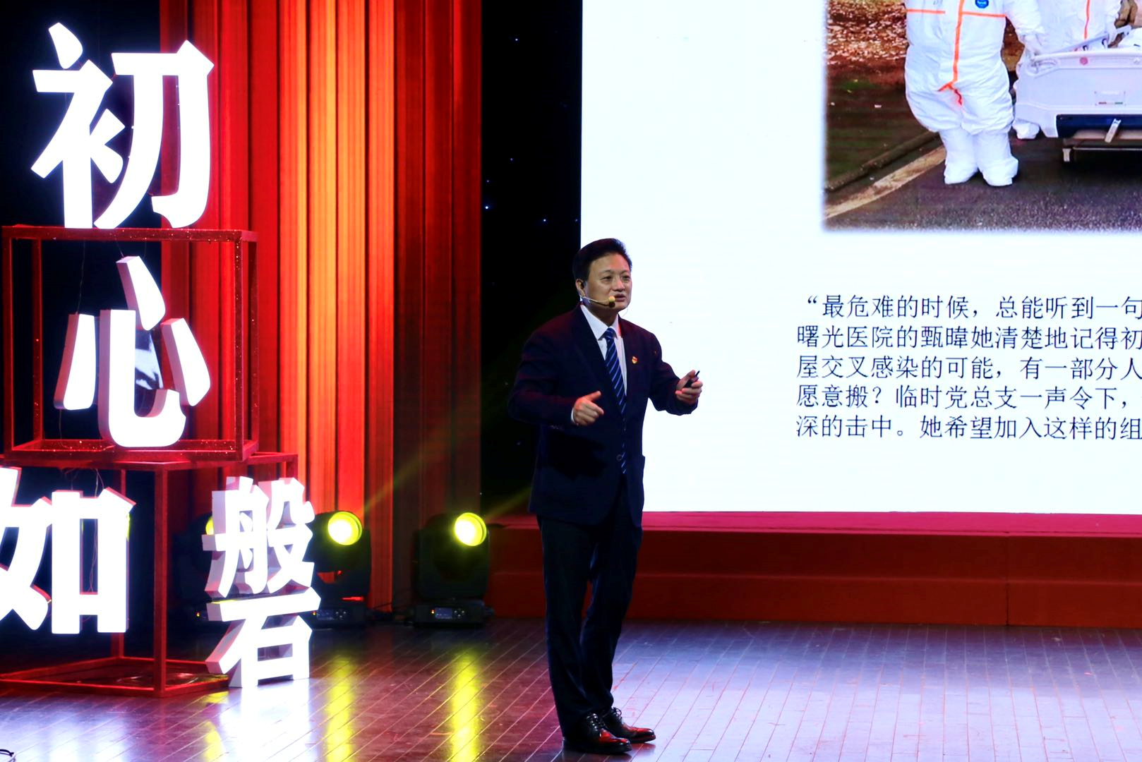 上海市第一批援鄂医疗队领队、临时党总支书记,上海市第一人民医院副院长郑军华作微演讲
