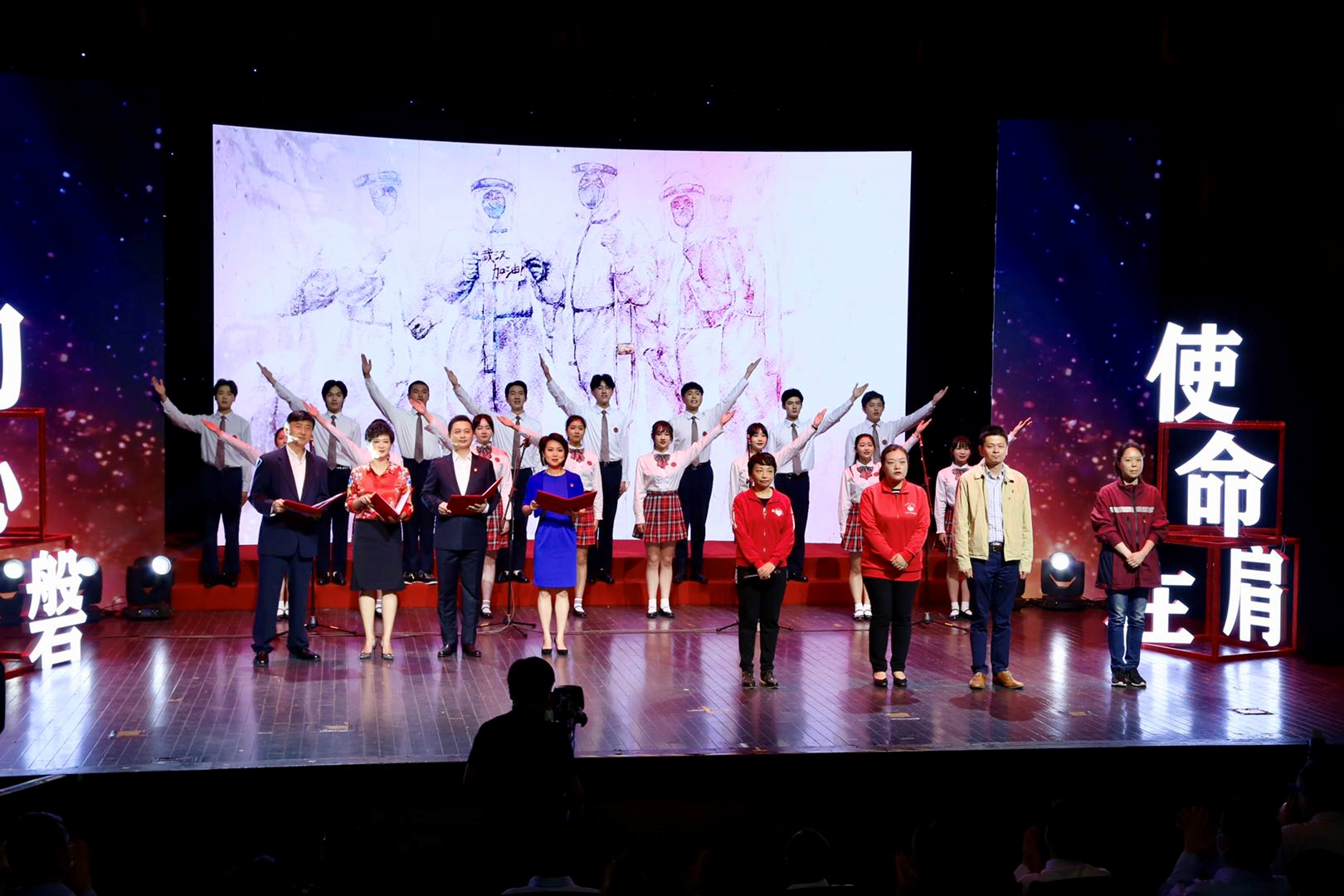 现场用朗诵和微访谈的形式,讲述了钟鸣、黄凤、顾海燕、任宏等逆行英雄的感人事迹