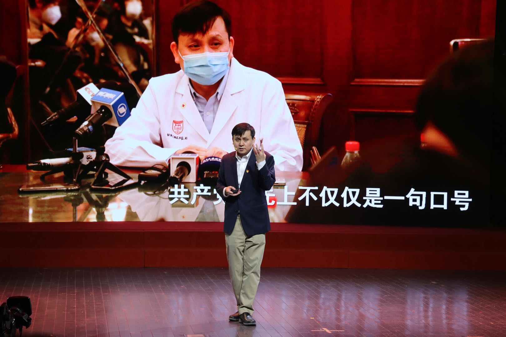 前边听了张文宏教授、郑军华教授和卢洪洲教授的演讲,我深受震撼、倍感鼓舞且由衷感激。我想借此机会,向所有奋战在抗疫一线的医务工作者们致以最崇高的敬意,感谢你们在没有硝烟的战场上守护家国、守护生命。