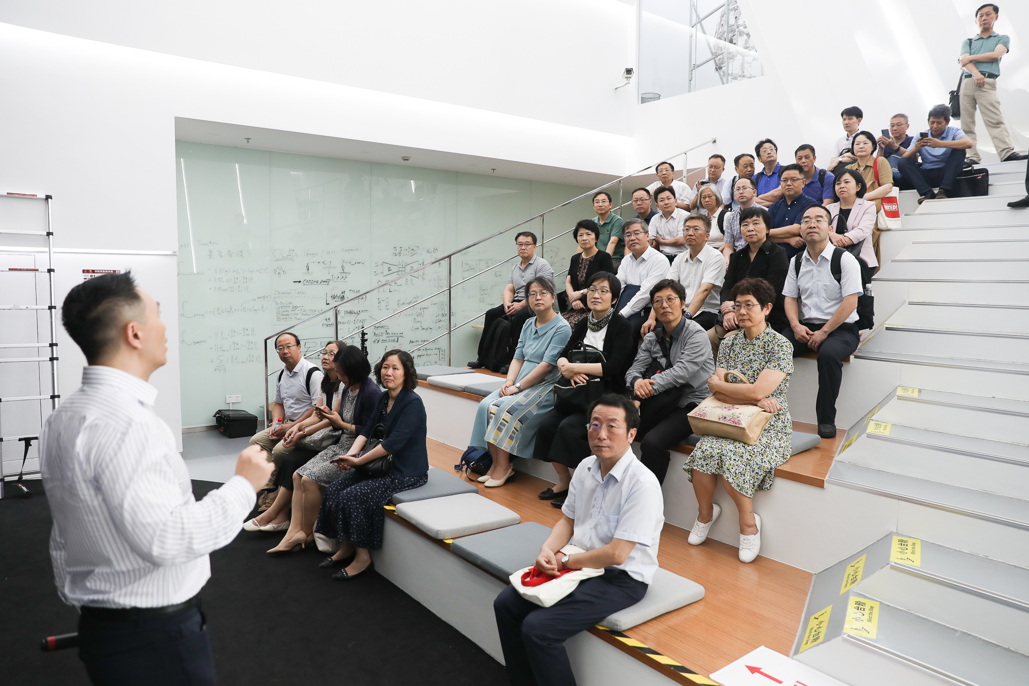 在实地调研环节,华东师大一行先后来到免疫化学研究所人字楼临床研究协同实验室、信息学院 MARS实验室、物质学院软物质微纳加工实验室,通过与相关单位负责人的交流探讨,了解上海科技大学优势学科的前沿成果和服务上海、服务国家经济转型产业升级的实际成效。
