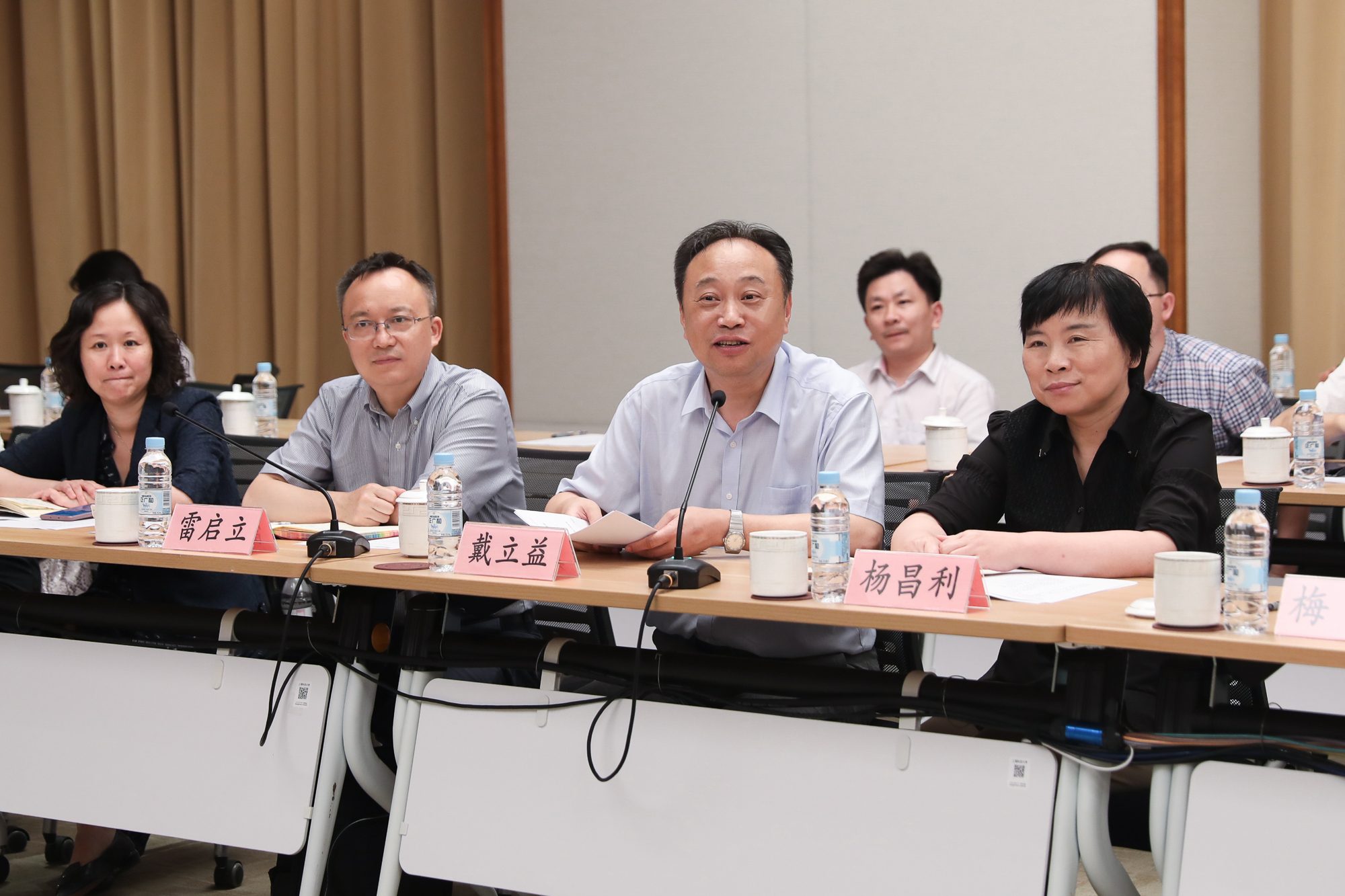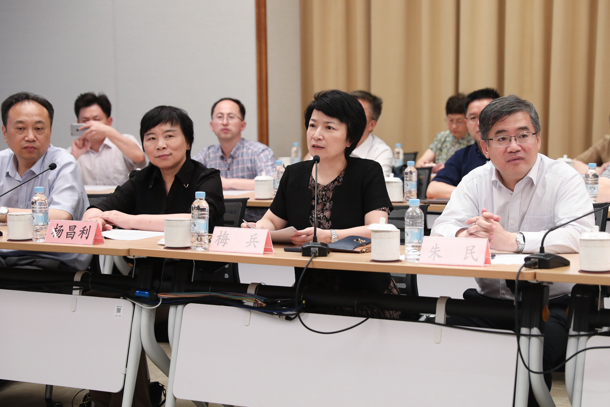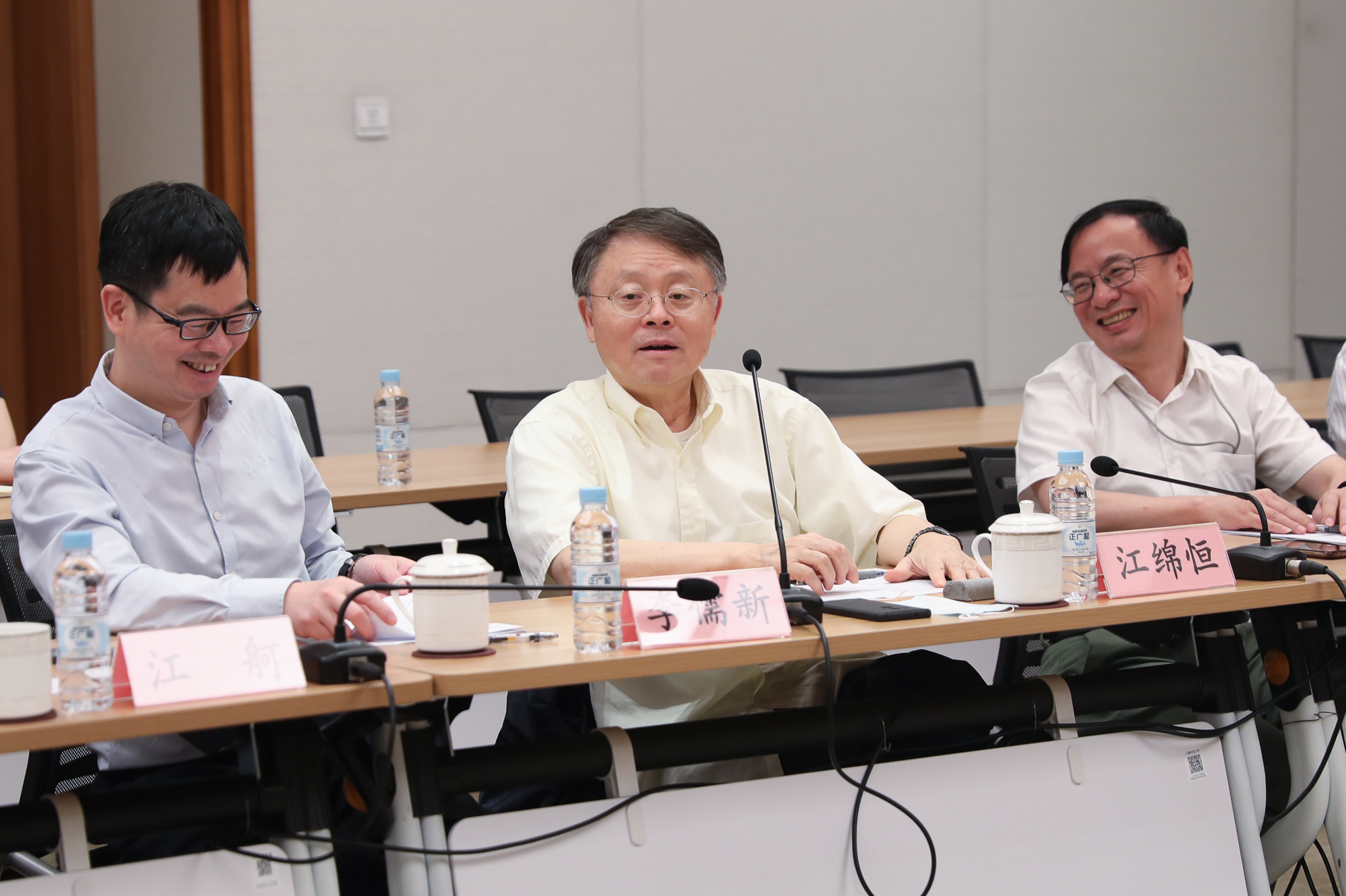 华东师大校领导梅兵、朱民、杨昌利、曹友谊、戴立益、雷启立,机关职能部门负责人;上海科技大学校领导江绵恒、李儒新、吴强、江舸,机关职能部门及大道书院负责人参加调研座谈会。