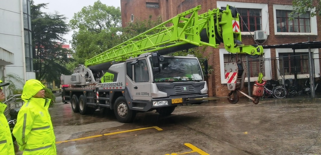 基建处先行启动响应预案,对在建工地进行安全检查,特别对塔吊、脚手架、防护网、户外宣传牌、围挡等受台风影响最大的设施进行重点检查,薄弱处督促现场整改加固,排除安全隐患。其中,闵行夏雨厅工程正值收尾阶段,施工单位提前将工地围挡拆除。