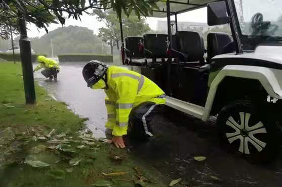 在巡逻过程中,协助后勤保障部对校内的排水系统进行“地毯式”排摸,清理排水沟,疏通下水道,对户外设施以及各类标识进行清查并加固,发现隐患及时上报并整改。