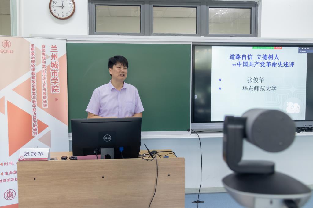 开班仪式后,张俊华围绕“为什么要培养社会主义的建设者和接班人”这一核心问题,为全体学员作“道路自信 立德树人——中国共产党革命史评述”专题报告。张俊华以中央政治局第七次集体学习精神为切入点,通过管理学的公式“L<C等于Die”回答“为什么要学”的问题,他强调,学习赶不上时代的变化就会被淘汰。他通过回顾历史、分析形势、展望未来,从中华民族的灾难史、中国共产党的革命史、以及未来的奋斗史,深刻回答“中国近现代为何被列强欺凌、中国如何才能复兴走向现代化、为何只有中国共产党才能领导中国人民建设一个现代化国家”的现实三问,并从中国共产党的百年奋斗历史,得出两个结论:中国共产党的成立和发展是历史、精英和人民的必然的、无悔的选择;中国共产党的壮大和胜利是民心向背、艰苦卓绝、浴血奋战、信仰至上的结果。