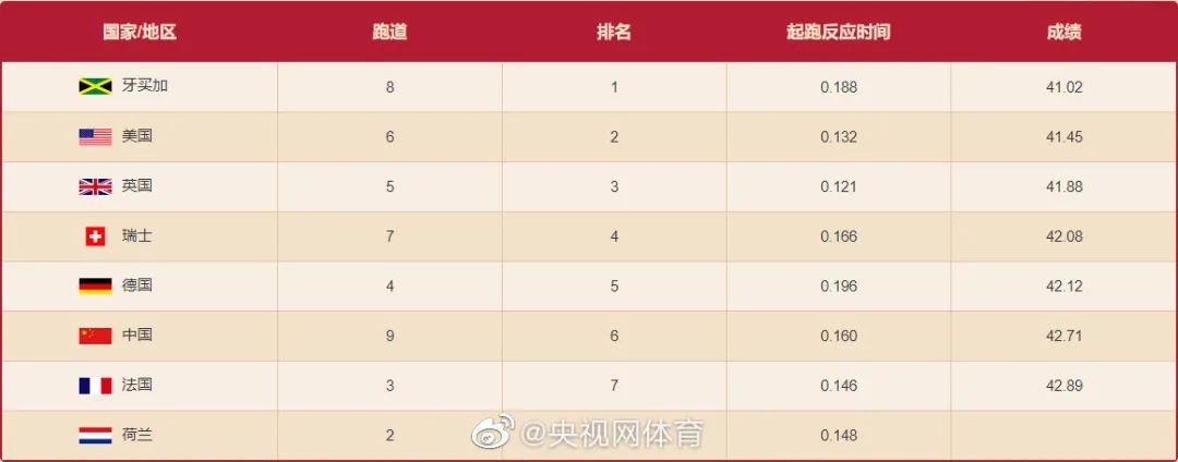 最终中国队跑出42秒71,获得了第6名。不仅刷新赛季最好成绩,也创造了中国田径队在该项目上的奥运最好成绩(此前为第八名)!