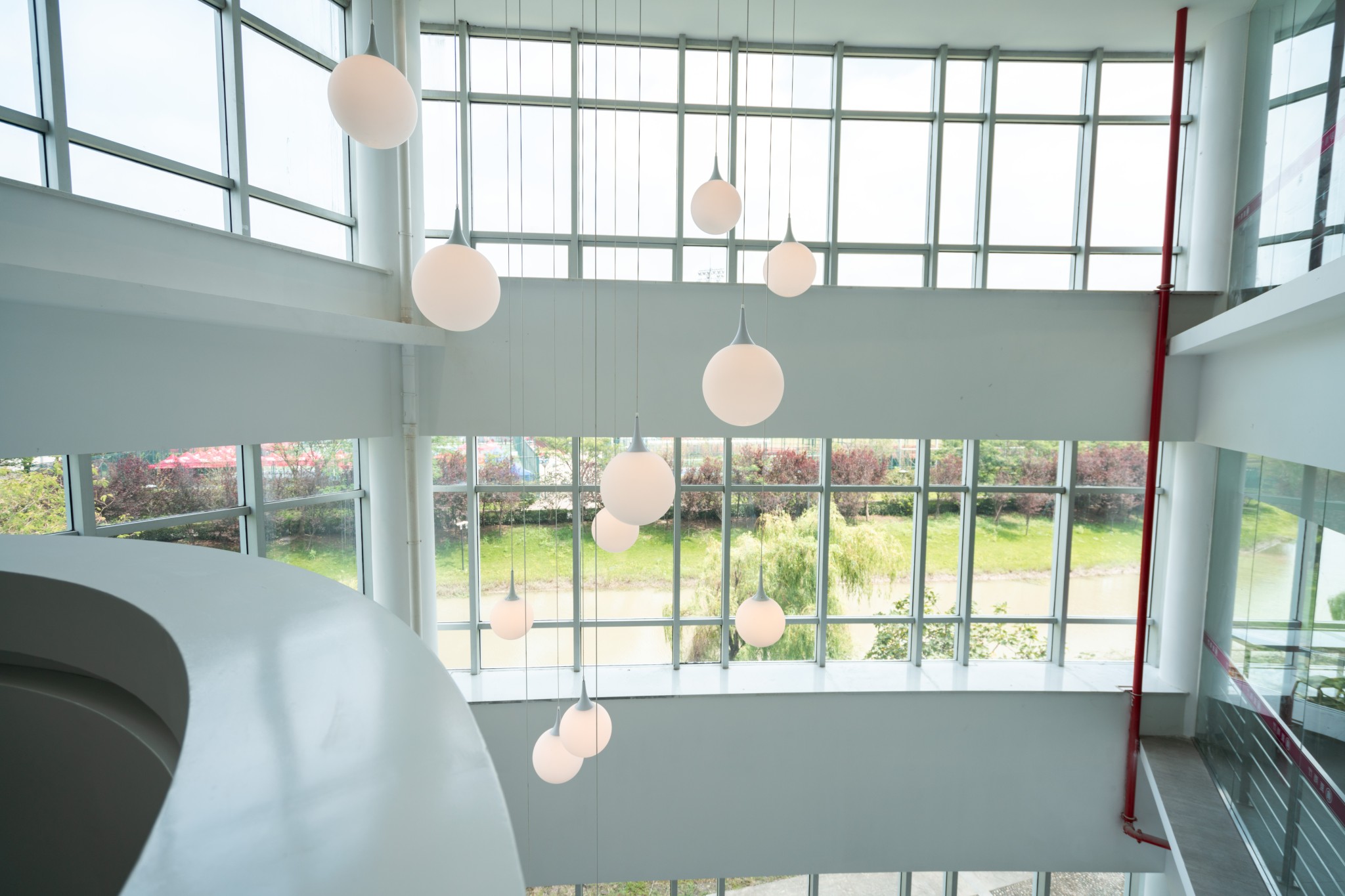 为了在餐厅设计中呼应“夏雨”这一主题元素,作了巧思。顶棚上的灯模,形状宛如一滴雨水,错落有致的灯带仿佛飘落的雨点滴答、滴答……窗里窗外,你可曾听见雨滴落入樱桃河?
