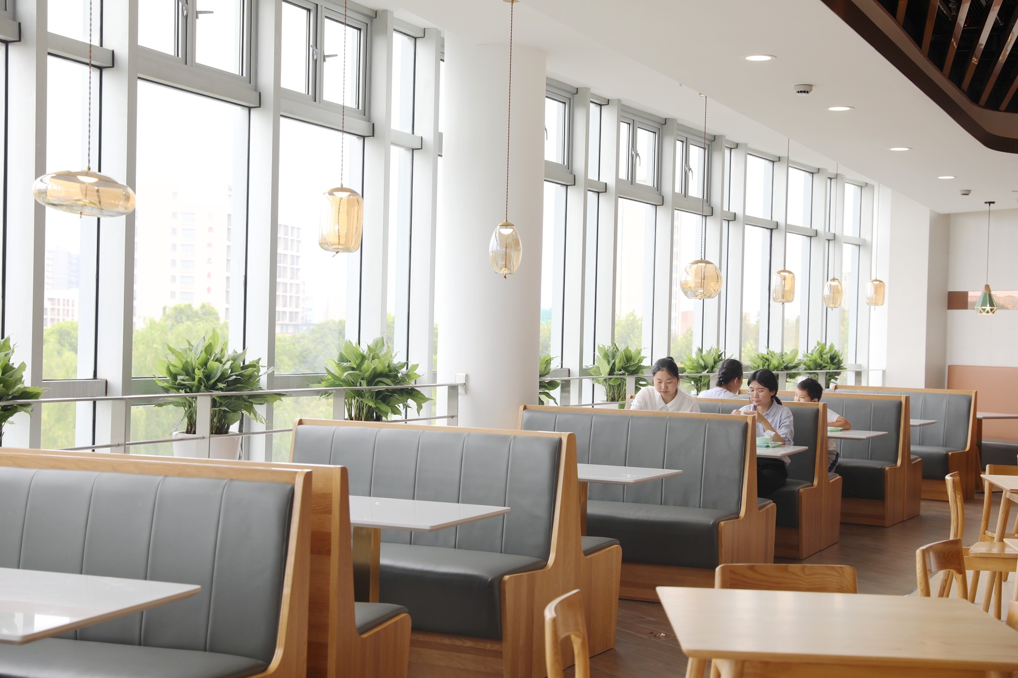 此次改造对原有结构不作改动,尽可能保留原有建筑元素。室内装修整体风格统一,以满足师生对就餐环境的需求,体现大学餐厅气质定位。木质桌椅与清新薄荷绿的餐具相得益彰。你喜欢吗?