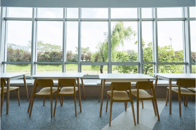 一楼餐厅明亮大气,满足师生基本餐饮需求。新增讨论区,为师生提供更多的学习和交流空间。