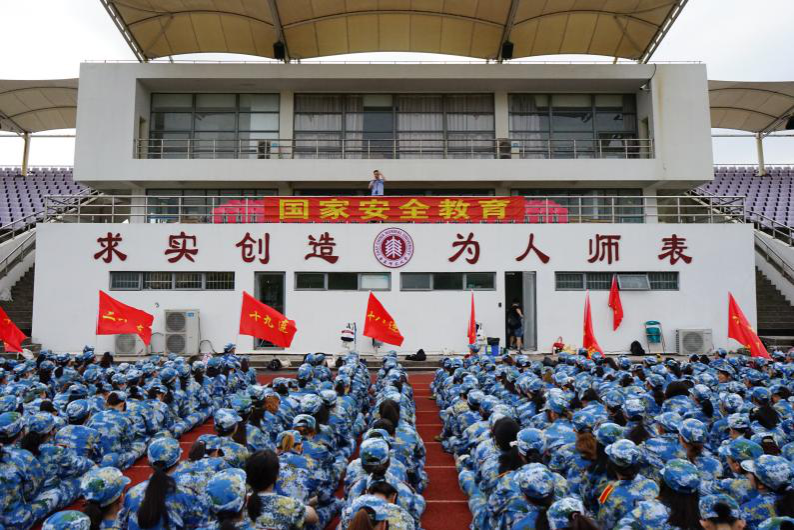 为了提高学生的政治觉悟,激发爱国热情,增强国防观念,发扬良好作风,8月23日至9月4日,澳门永利皇宫官网入口2019级、2020级学生军训成功开展。在疫情防控常态化的要求下,本次军训采用线上和线下相结合的方式,具有训练规模大、时间安排紧凑、实训内容丰富等特点。在军训这门必修课上,49个连队共计6804名华东师大学子再次交出一份满意的答卷。