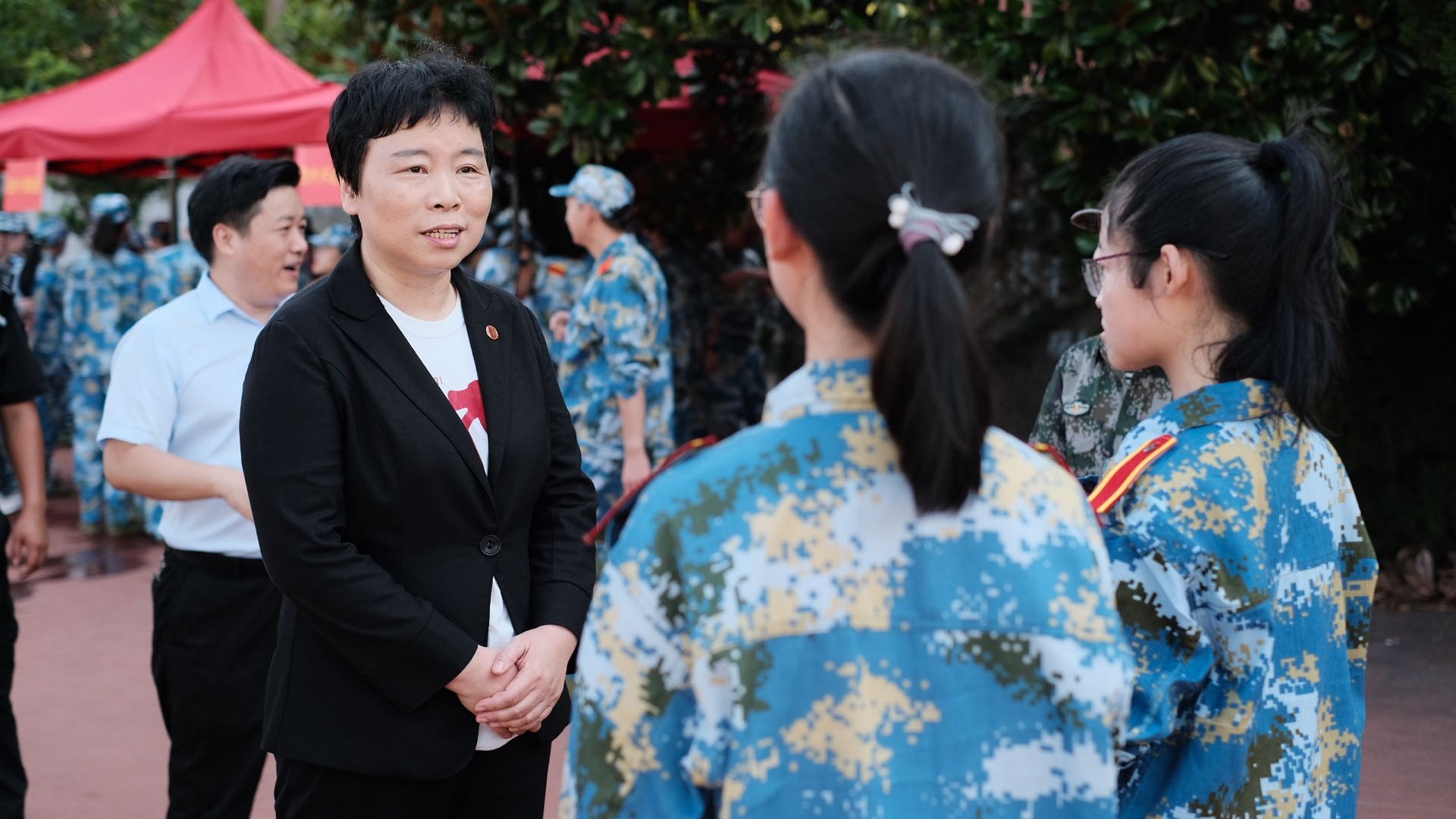 9月1日,澳门永利皇宫官网入口党委副书记杨昌利看望军训中的同学们。见到同学们在烈日下不怕艰苦、勇于担当的精神风貌,她感到非常欣慰和自豪。她表示,报效祖国是每个大学生的责任与任务,希望同学们在训练中磨练坚强意志,学习教官们作为军人不怕艰苦、勇于担当的精神,同时也要培养集体主义观念,并注意强健体魄。