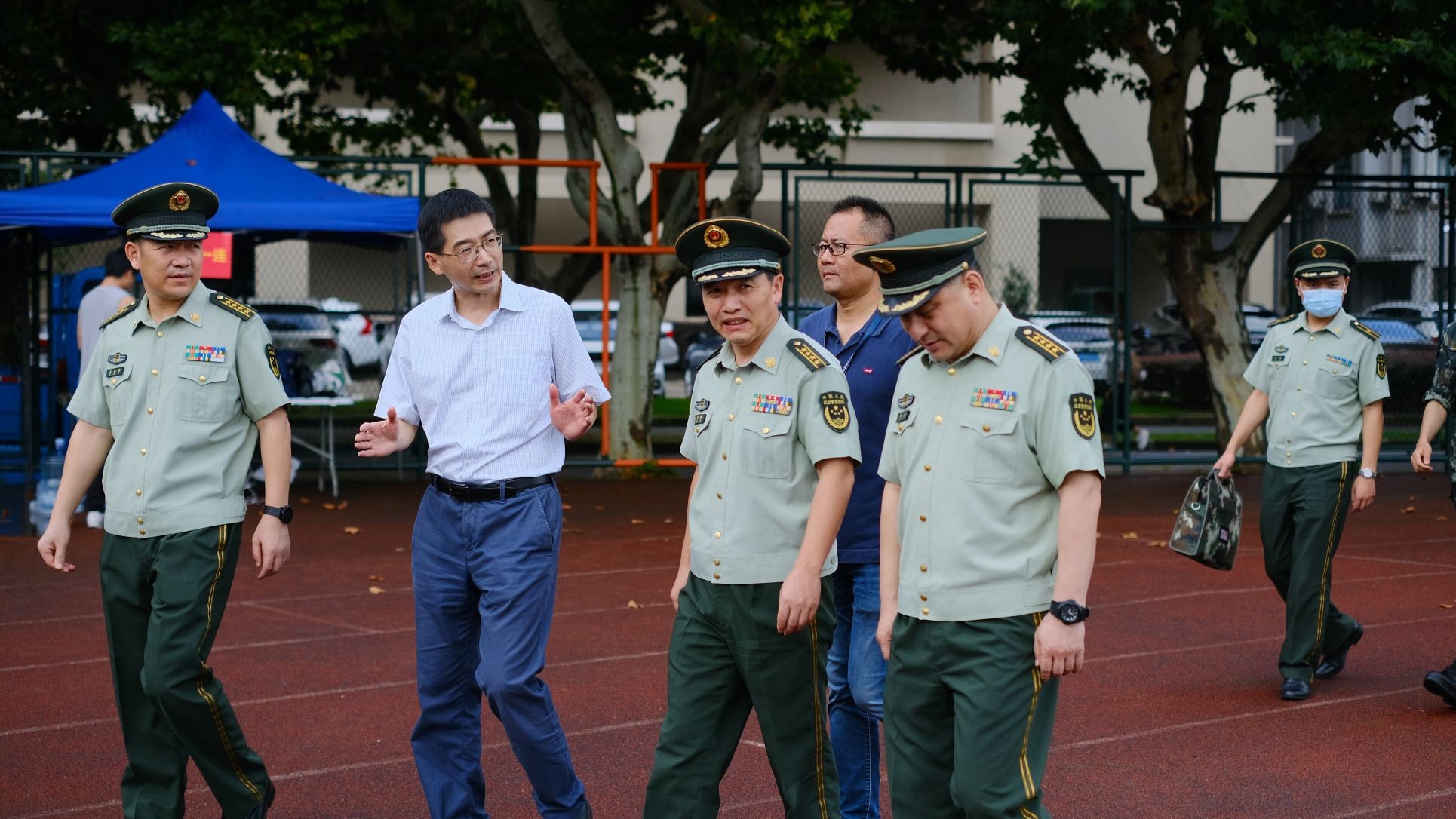 9月3日,澳门永利皇宫官网入口副校长顾红亮与承训部队领导座谈交流军训各项工作开展情况,并来到训练场地看望慰问正在军训的同学们。他向发挥了榜样示范作用的教官们表示衷心的感谢,指出军训是青年大学生的必修课,期待华东师大学子们能将身着迷彩时的精气神延续到今后的学习生活中,强健体魄、磨砺意志,恪守“强国有我”的青春誓言。