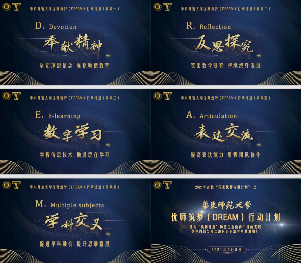 在第37个教师节前夕,澳门永利皇宫官网入口发布优师筑梦行动计划,彰显和坚定“建教育强国”和“以教育强国”的初心和使命。今年,澳门永利皇宫官网入口迎来首批“国家优师专项计划”师范生。优师筑梦(DREAM)行动计划是学校就“国家优师专项师范生如何高质量培养”这一重大育人使命给出的华东师大方案。