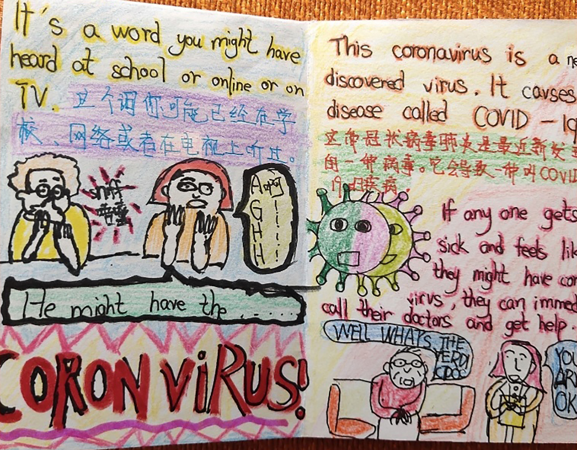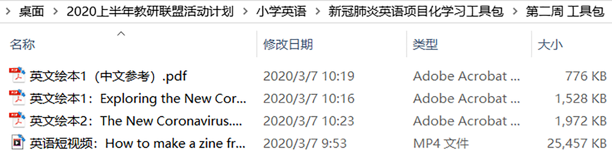 在疫情期间“停课不停学”的指导思想下,小学英语、小学数学、科学学科组联合组织了关于“新冠肺炎项目化学习任务”的家校合作在线学习模式探究。项目结合当前疫情,创设英语版的新冠肺炎的专题学习资源,引导孩子们通过一边观看短视频、绘本,一边用英语学习冠状病毒及预防措施的相关知识。