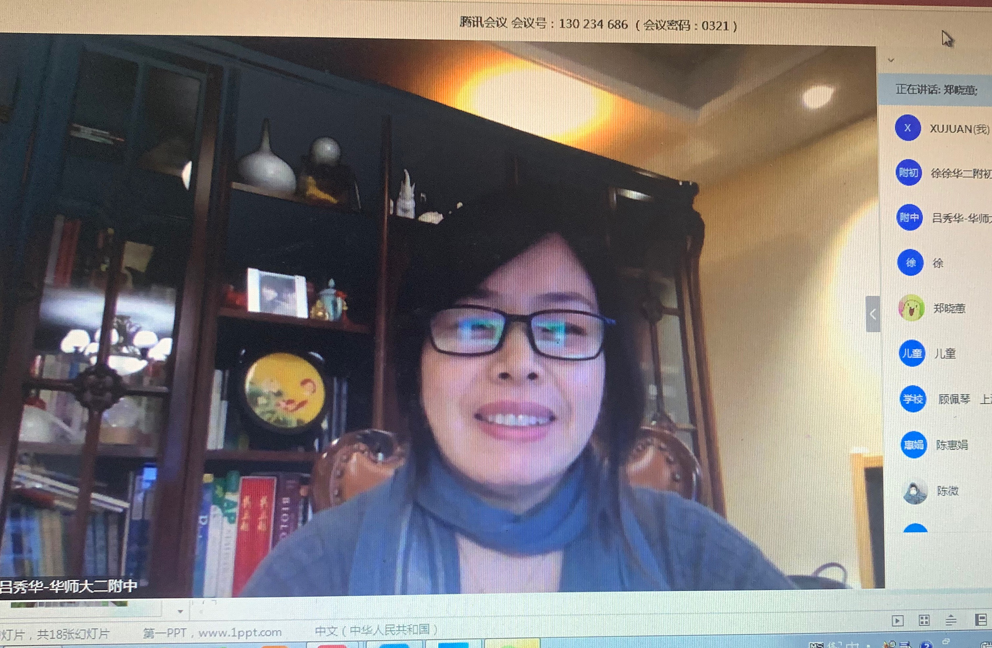 华师大二附中的生命科学教研组组长吕秀华老师就线上教学平台的选择,二附中生命科学学科的在线学习课程设计,结合疫情的校本课程开发与微课录制,如何在线指导学生个性化学习等方面介绍了经验。华师大二附中附属初中的徐娟老师针对上课和作业两个环节,介绍了将再现演示实验贯穿于在线教学中以提高学生学习兴趣的具体做法。