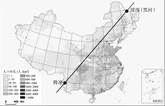 1935年,胡焕庸在论文《中国人口之分布》中提出了黑龙江瑷珲(现黑河)—云南腾冲的人口地理分界线,即著名的“胡焕庸线”
