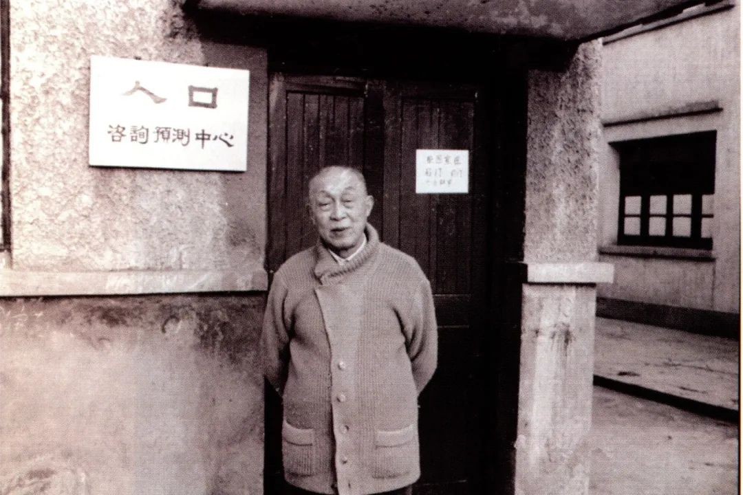 1957年,中央教育部批准华东师大成立人口地理研究室与河口海岸研究室,分别由胡焕庸、陈吉余任主任。图为胡焕庸在工作室前留影。