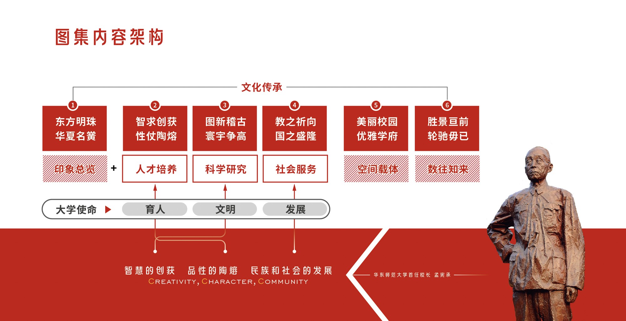 整体而言,图集从选题到设计,充分考量多样用户群需求,通过内容的精准整合和定制化呈现,力求增强图集的趣味性和可读性,拓展大学宣传覆盖面。力求做到师生校友可一部在手、通览全貌,社会公众可按图索骥、择趣而阅,职能部门可按需组合、因事而化。