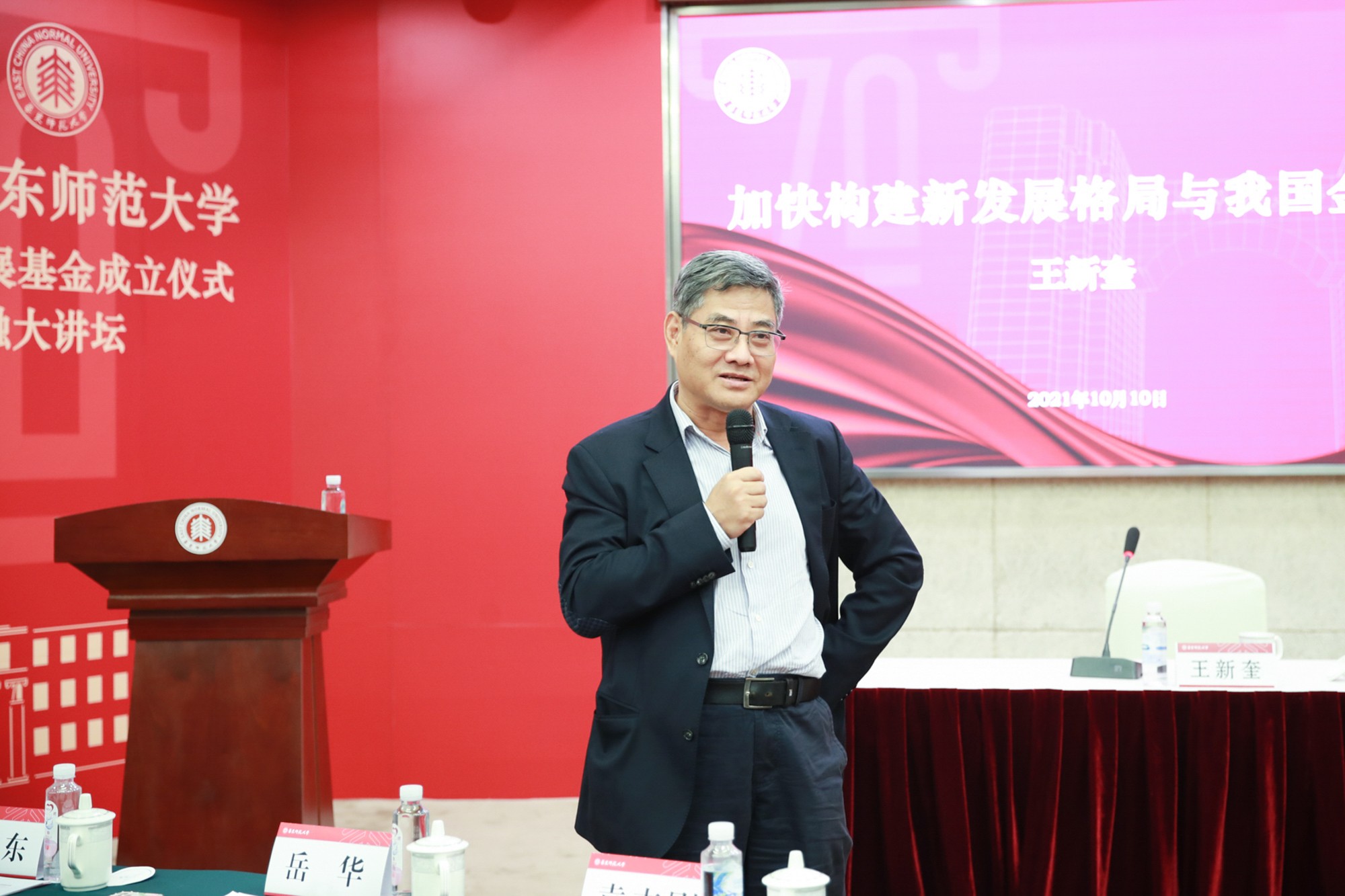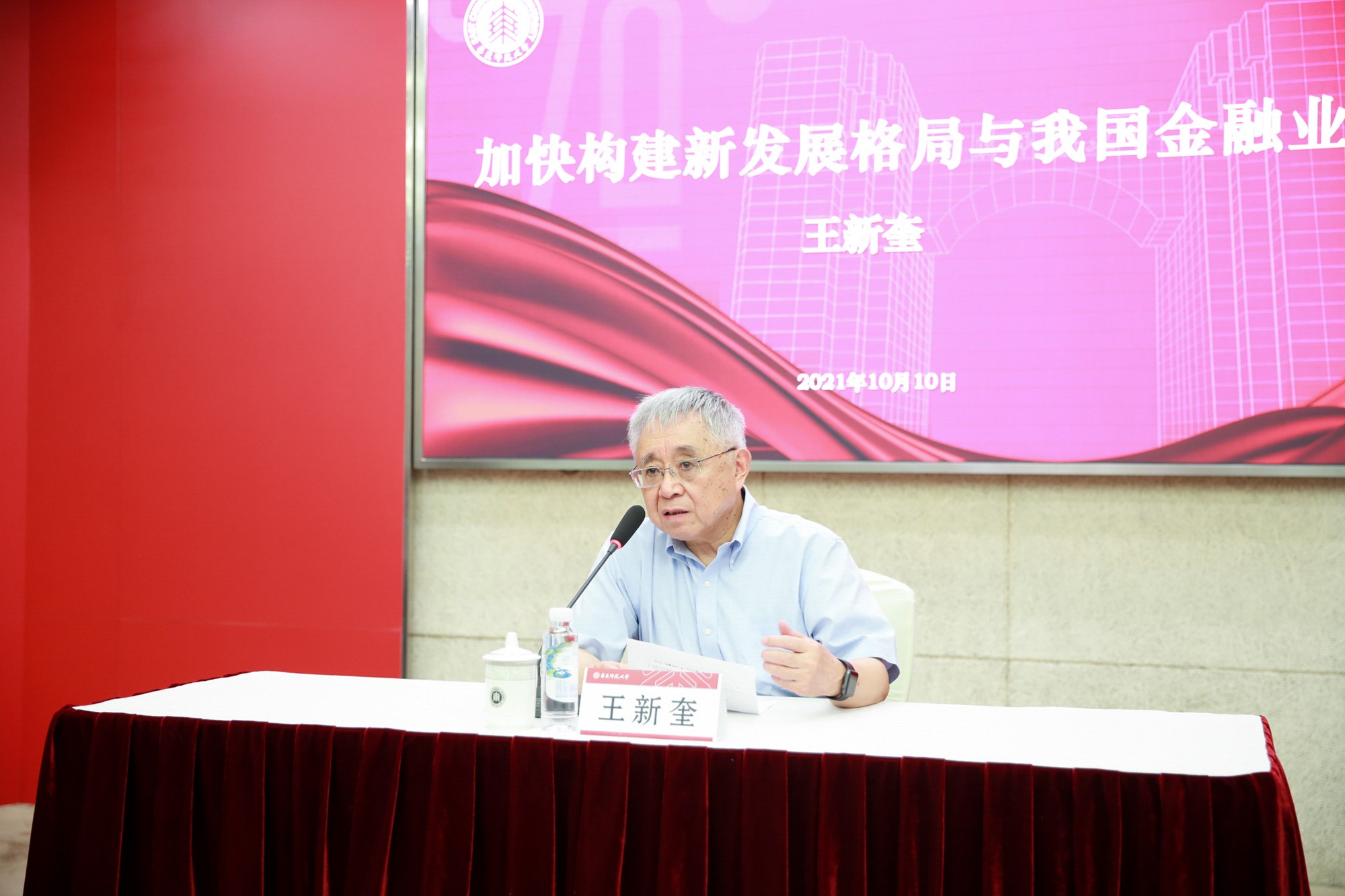 王新奎作题为《加快构建新发展格局与我国金融业》的主题报告。面临当前经济全球化发展新趋势,我国进一步加强对外开放新战略,并以供给侧结构性改革为主线,加快构建以国内大循环为主体,国内国际双循环相互促进的新发展格局。他从商品经济、消费与供给等现实问题出发,对供给侧结构性改革、国内大循环及国际国内双循环的内在机理进行阐释,提出对新发展格局转型动因及方式的理解,希望进一步关注产业政策研究,多维度提供有力有效的金融支持。