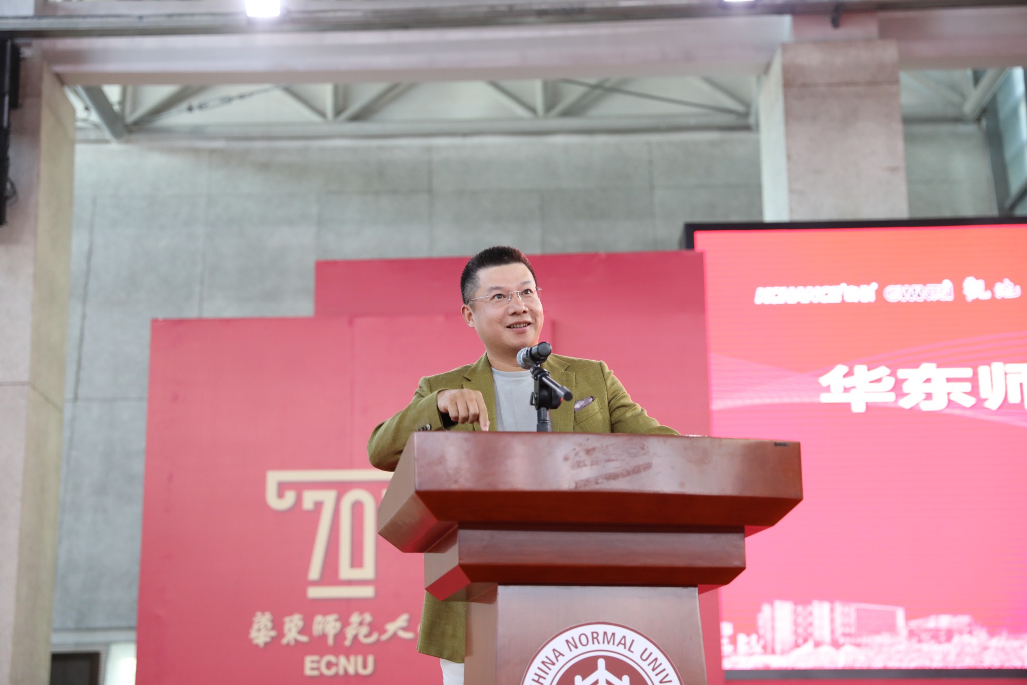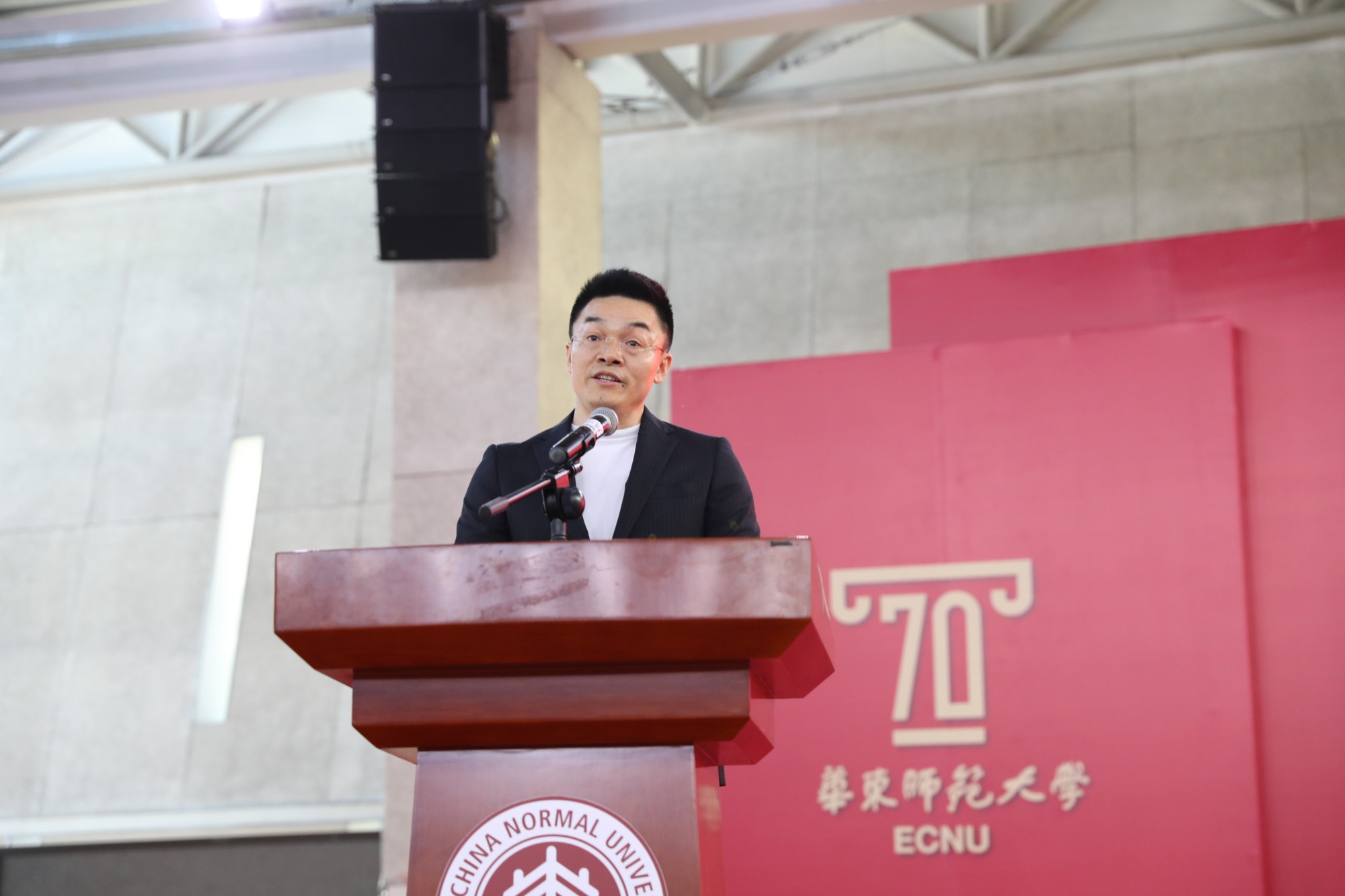 洪清华校友动情地回忆了他在母校度过的七年学习时光。他仍记得获得华东师大录取通知书的激动,记得在老校区图书馆学习的渴望,也记得在创业时学校、学院给予他不断进步的力量。他感谢母校的精准培育和良师的因材施教。他鼓励同学们能够牢记校训,脚踏实地、创新创造,在知识、道德和言行上为他人做榜样,珍惜在师大度过的青春韶华,为国家、社会和民族创造价值。他希望通过捐赠为华东师大的建设、为体育科研、学校高水平运动队、篮球队等贡献自己的绵薄之力。