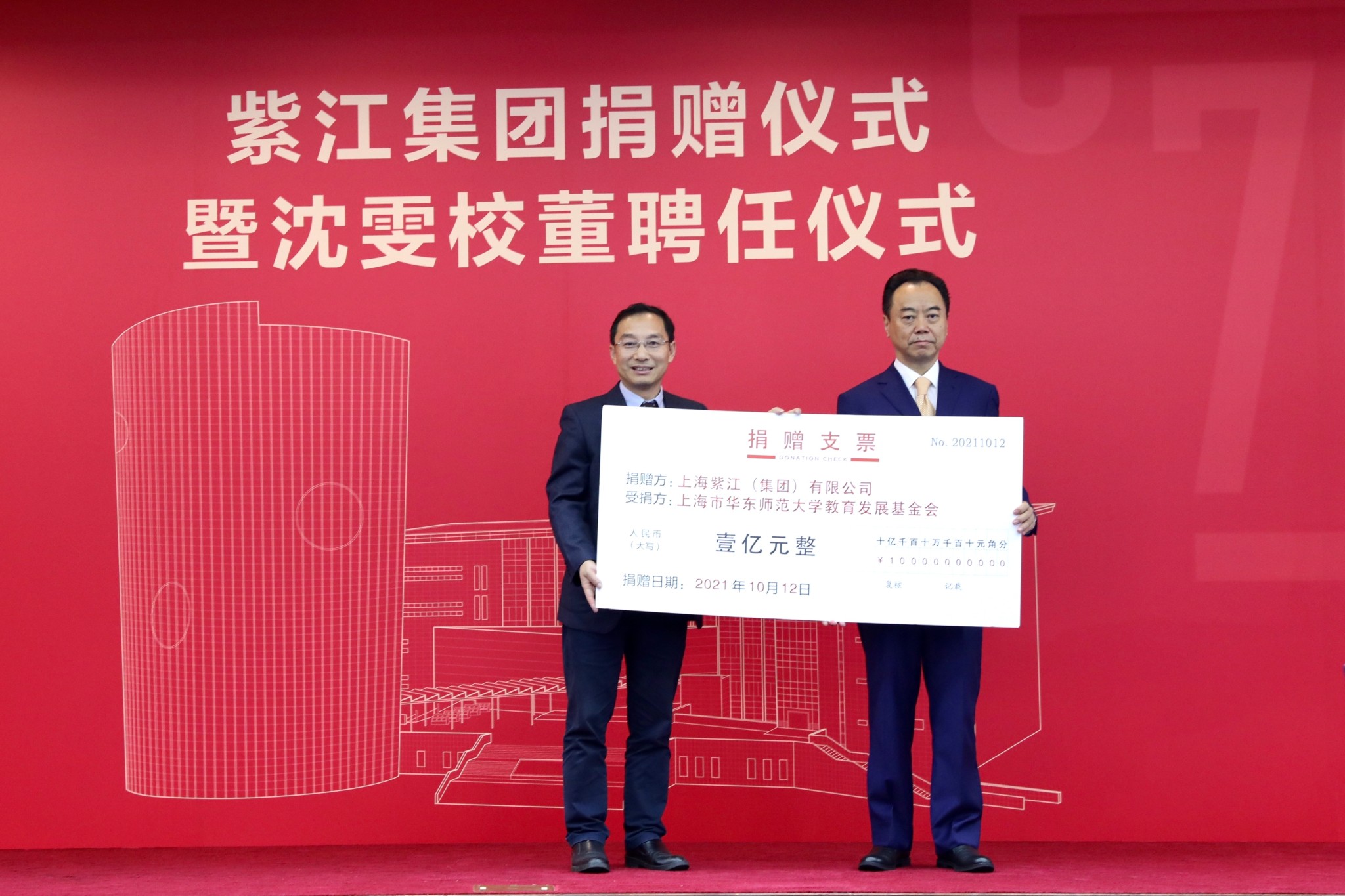 紫江集团向华东师大捐资1个亿