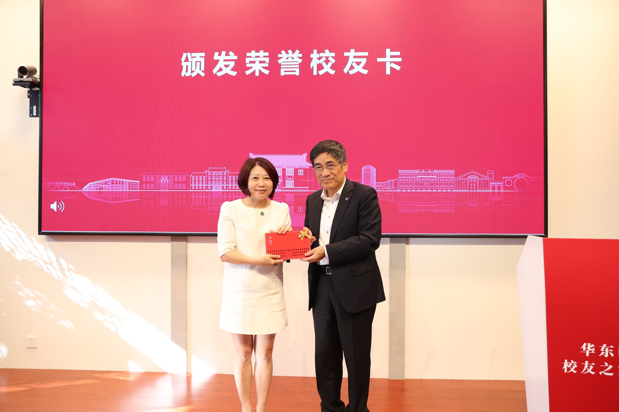 童世骏为1986级中文系钱倩校友颁发荣誉校友卡