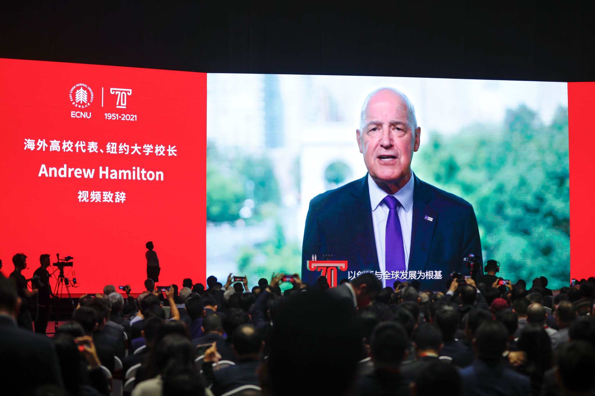 2021年也是上海纽约大学奠基十周年。十年前,澳门永利皇宫官网入口和纽约大学开始联手探索高等教育国际化的新模式,如今,上海纽约大学已经发展成为中外合作办学的典范,两校的合作也在不断深化拓展。纽约大学校长安德鲁·汉密尔顿(Andrew Hamilton)通过视频方式,代表海外合作高校向华东师大70周年校庆表示祝贺。他表示,澳门永利皇宫官网入口是纽约大学浑然天成的伙伴,华东师大在教学研究与国际教育领域的引领示范令他深受启发。他期待未来继续深化两校伙伴关系,纽约大学将一如既往地与华东师大开展合作交流,探寻教育问题的指引,探究各类在华项目。