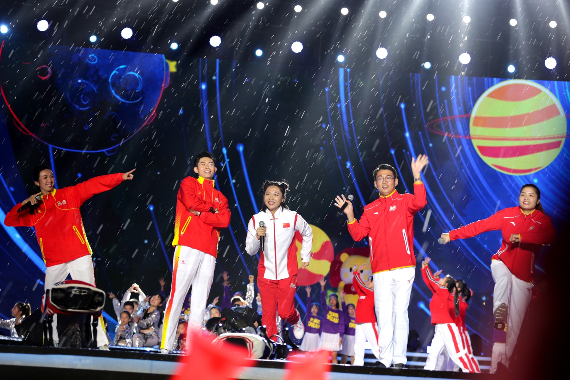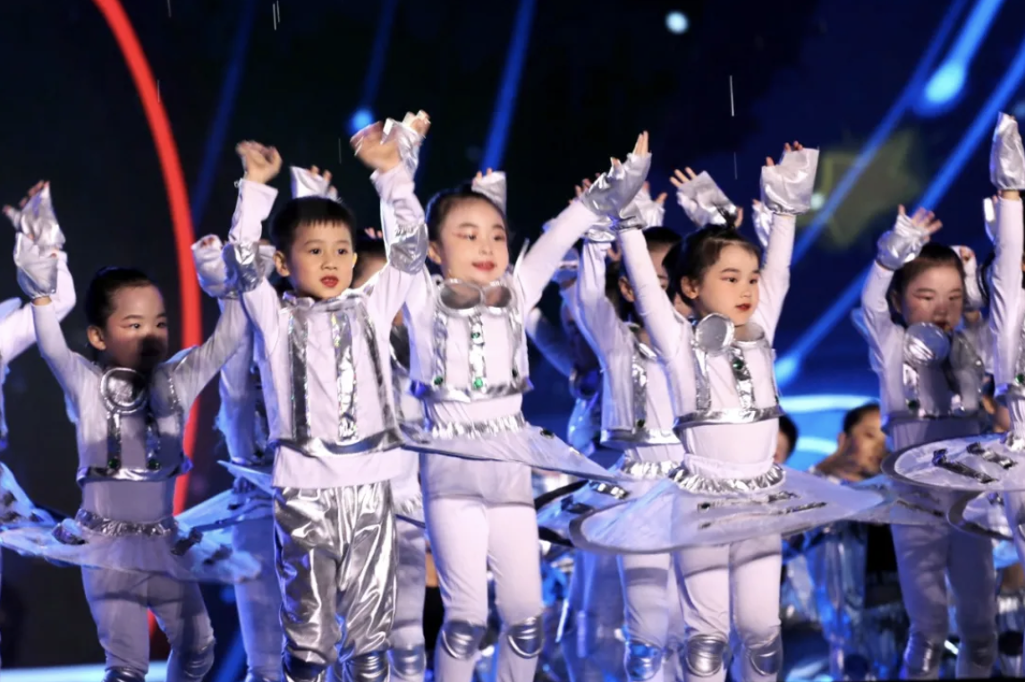 体育与健康学院 2017 级本科生、在东京奥运会和全运会赛场不断创造奇迹的“小哪吒”葛曼棋与华东师大田径队教练陈泷,队友林雨薇、凌佳瑜、曾建航献唱《大梦想家》,来自华东师大附属幼儿园、小学、中学的近两百名同学同台演出,7只幸福花狮与观众现场互动。