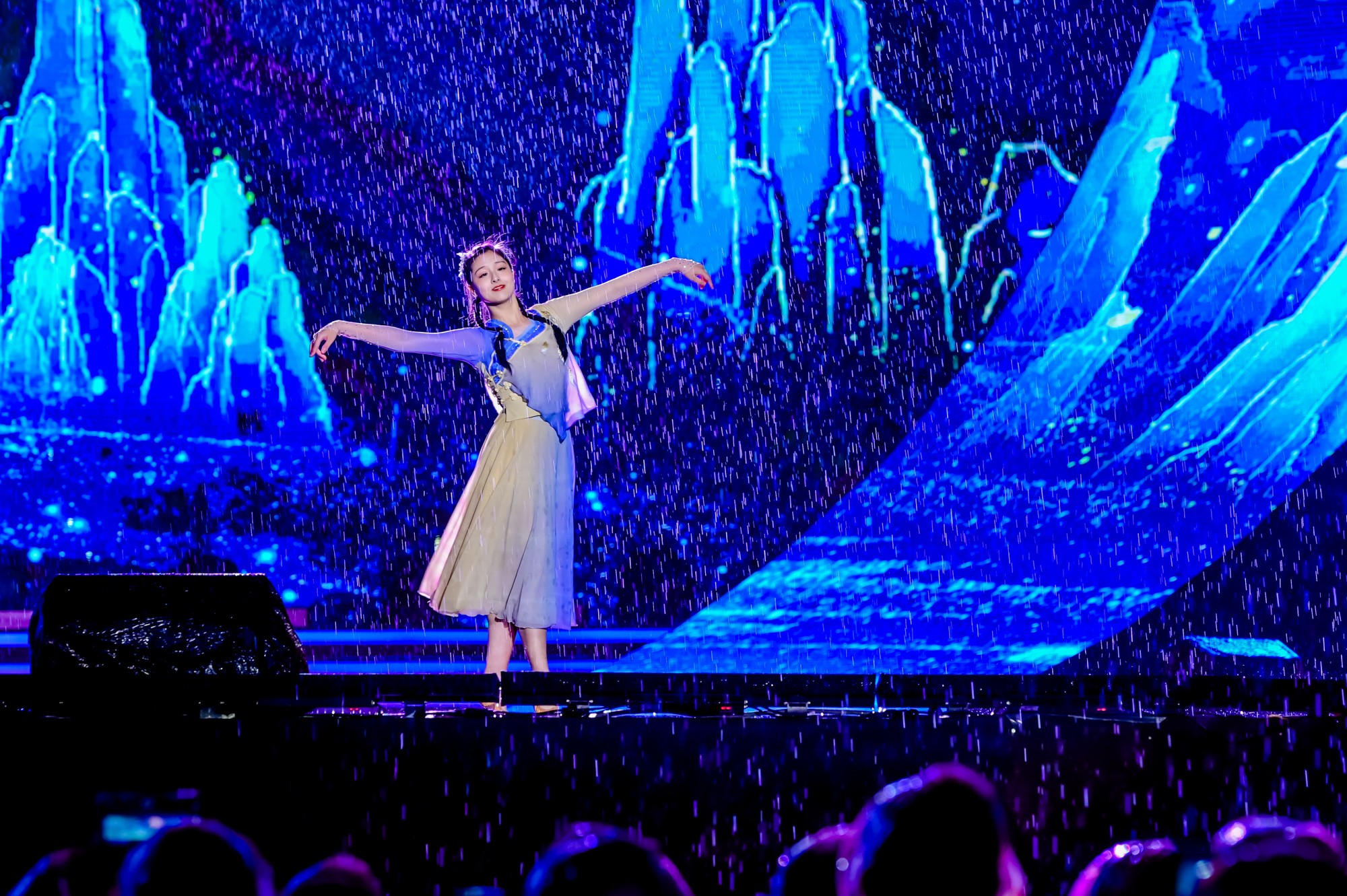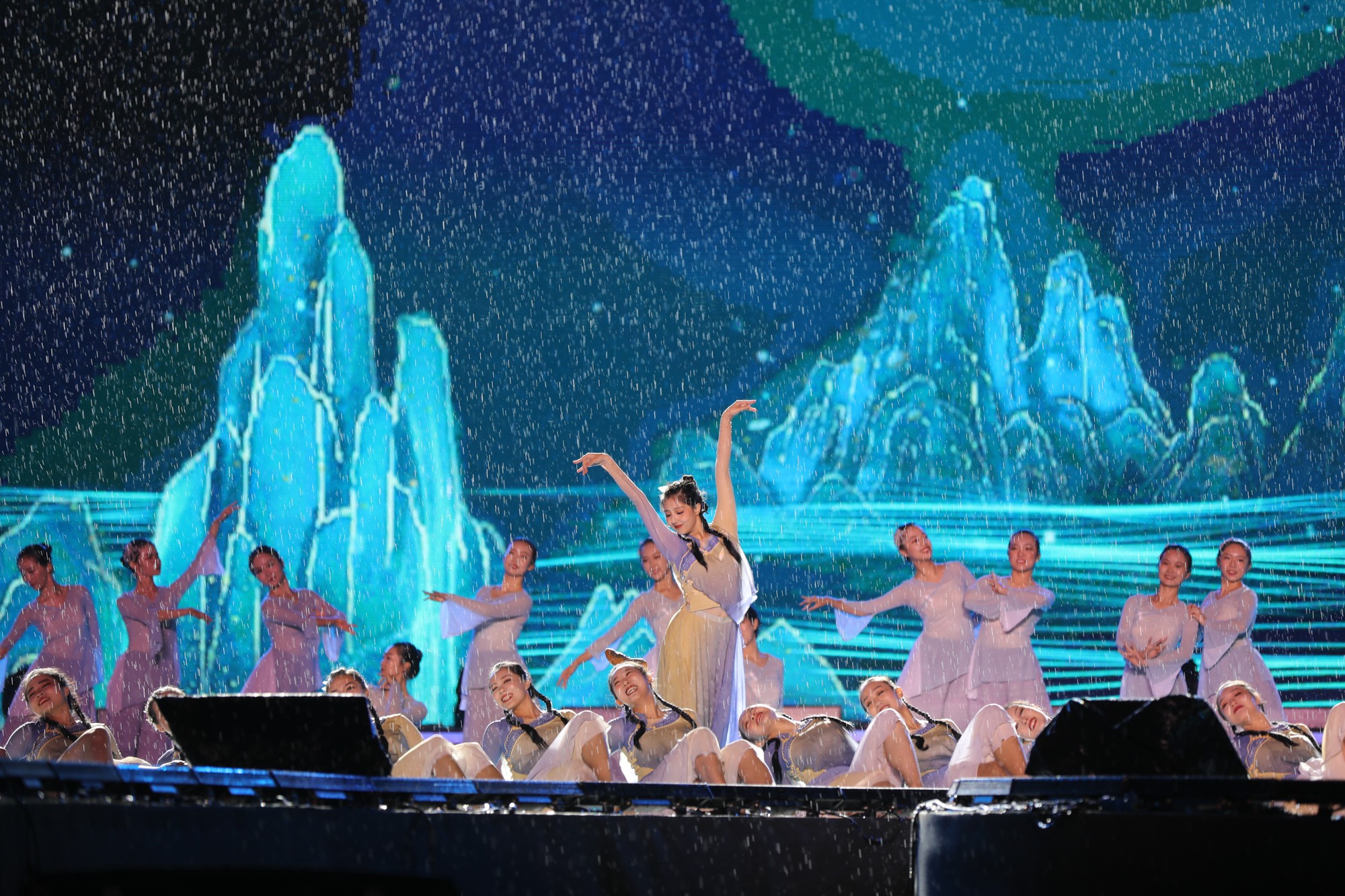 当晚,在华东师大闵行校区樱桃河畔,八千余名师生校友在线下、100万余名观众通过线上多直播平台观看文艺演出。为生动讲述这座“两河流域”大学70年来“为党育人,为国育才”的不变追寻,“大江大河,弄潮逐浪”的矢志探索,文艺演出以“水”作为贯穿始终的意象。