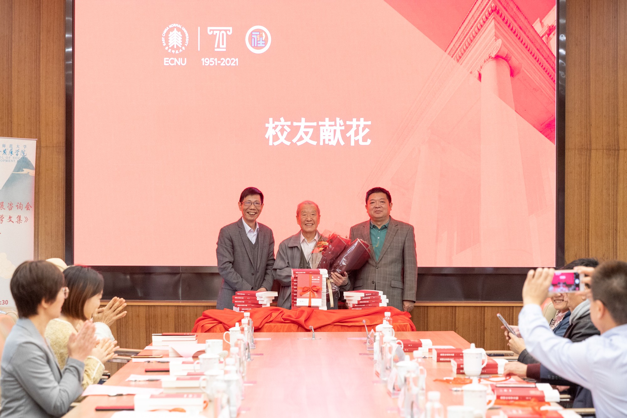 发布会上,吴铎、顾红亮、罗国振、文军、熊琼共同为新书揭幕,吴铎教授向与会校友及教师代表赠送了《文集》,校友代表上海开放大学党委书记楼军江和海南省人民检察院检察委员会委员、公益诉讼检察部主任、二级高级检察官刘本荣代表校友向吴铎老师赠送鲜花并对文集的出版表达由衷的祝贺。
