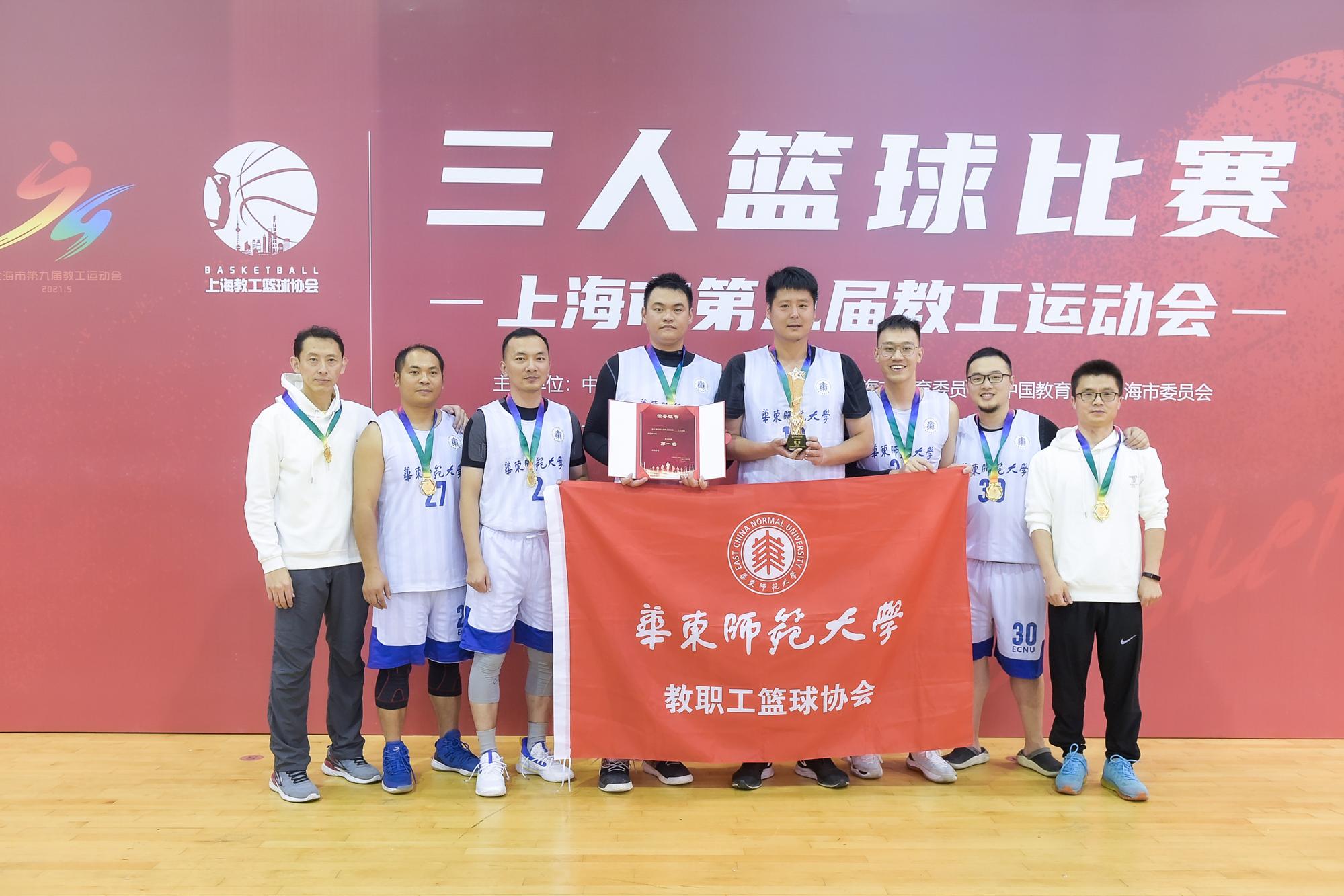 华东师大教工篮球队在10月30日举行的上海市第九届教工运动会男子三人篮球赛中取得A组第一名,勇夺大赛冠军。本次大赛是由中共上海市教育卫生工作委员会,上海市教育委员会,中国教育工会上海市委员会主办的第九届教工运动会的球类赛事之一,由上海教工篮球协会承办。