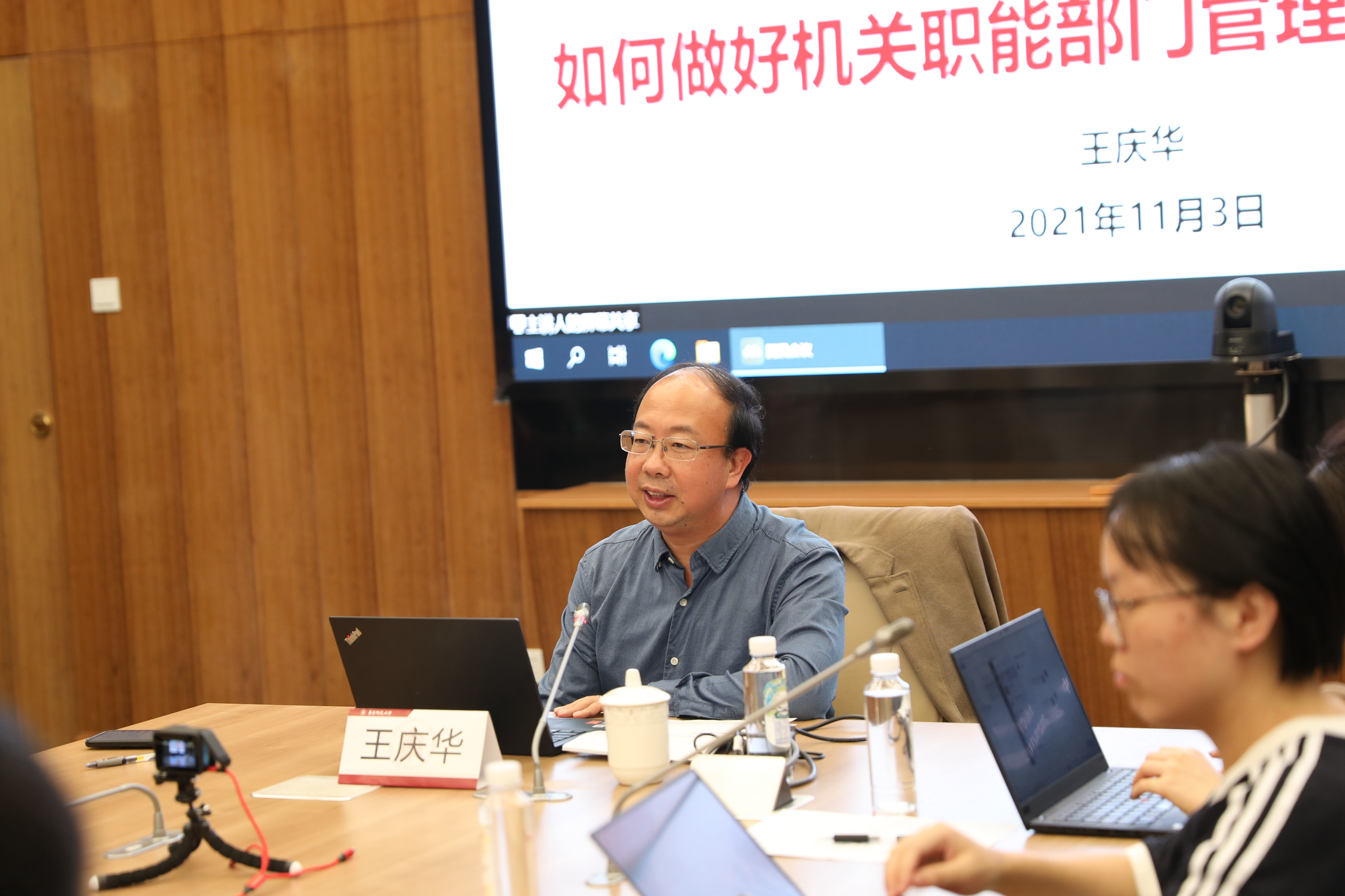 如何培养造就一支忠诚干净担当、卓有能力、适应“双一流”建设要求的高素质、专业化机关管理队伍?11月3日,华东师大2021年机关青年管理骨干培训班暨党史学习教育读书班开班,校党委统战部部长、机关党委书记王庆华作开班动员并作题为《如何做好机关职能部门管理团队文化建设》的开班第一课。来自23个部门的52位机关青年骨干参加本期培训,开班仪式由机关党委副书记张军主持。