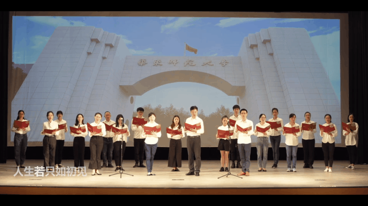 随后开放教育学院师生通过朗诵诗歌《起航·筑梦》表达了对学校及网络教育的情感:“华东师大教会了我,即使前路荆棘,也要踏出繁花,即使负重前行,也要万丈光芒”。