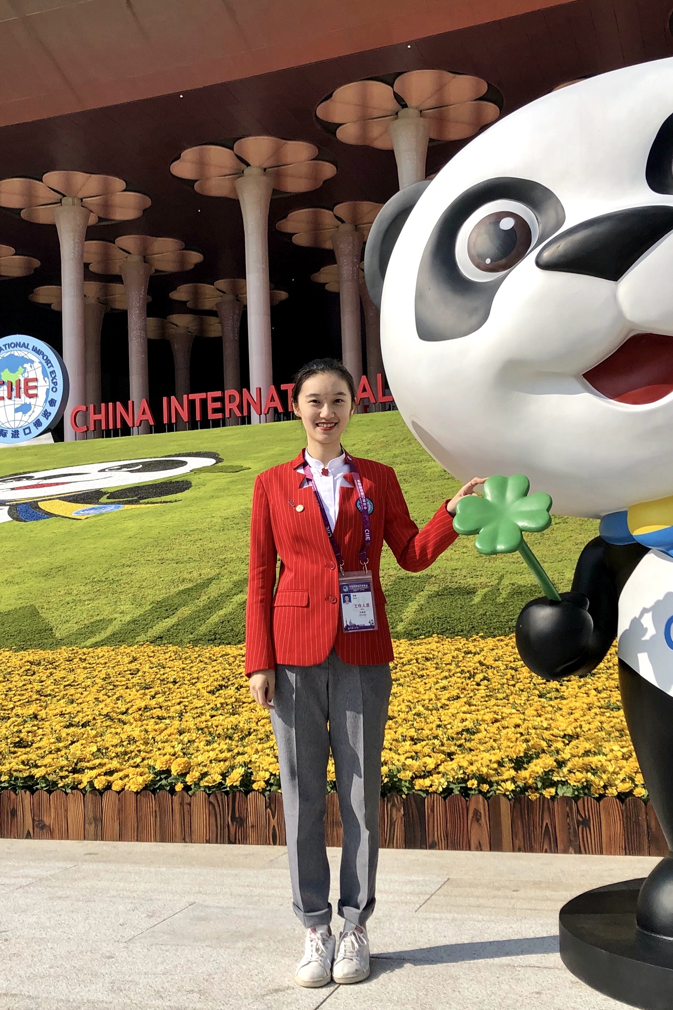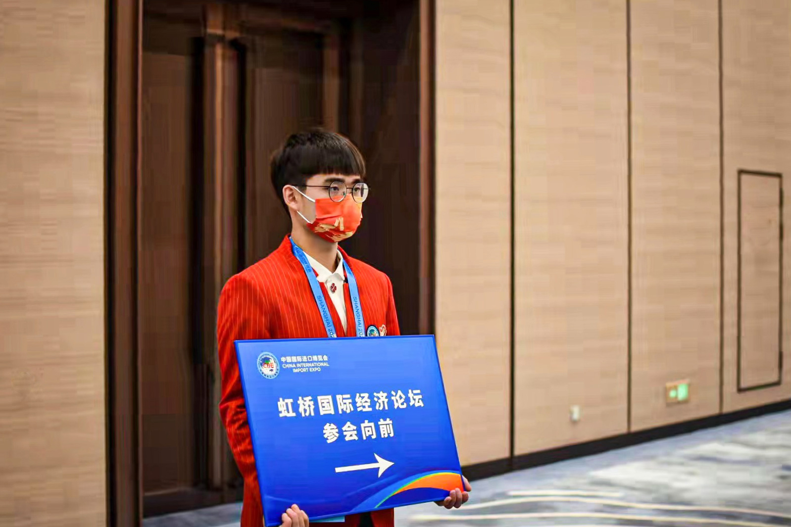 2018-2020年,外语学院2020级硕士研究生沈寅分别在进博会担任了会务志愿者、失物招领处志愿者、展览部办公室助理不同岗位的工作。今年,她的岗位在进口博览局会议中心组的会期会务岗,配合会务工作人员与客户对接会务需求,协助现场会务执行,做好配套场地指引工作,协助同传耳机发放等。