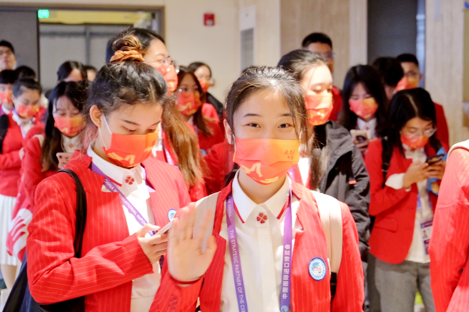 师大红与进博蓝,是你们青春最靓丽的色彩。希望你们展现出华东师大人自信与卓越的风采!华东师大“小叶子”们请继续加油!