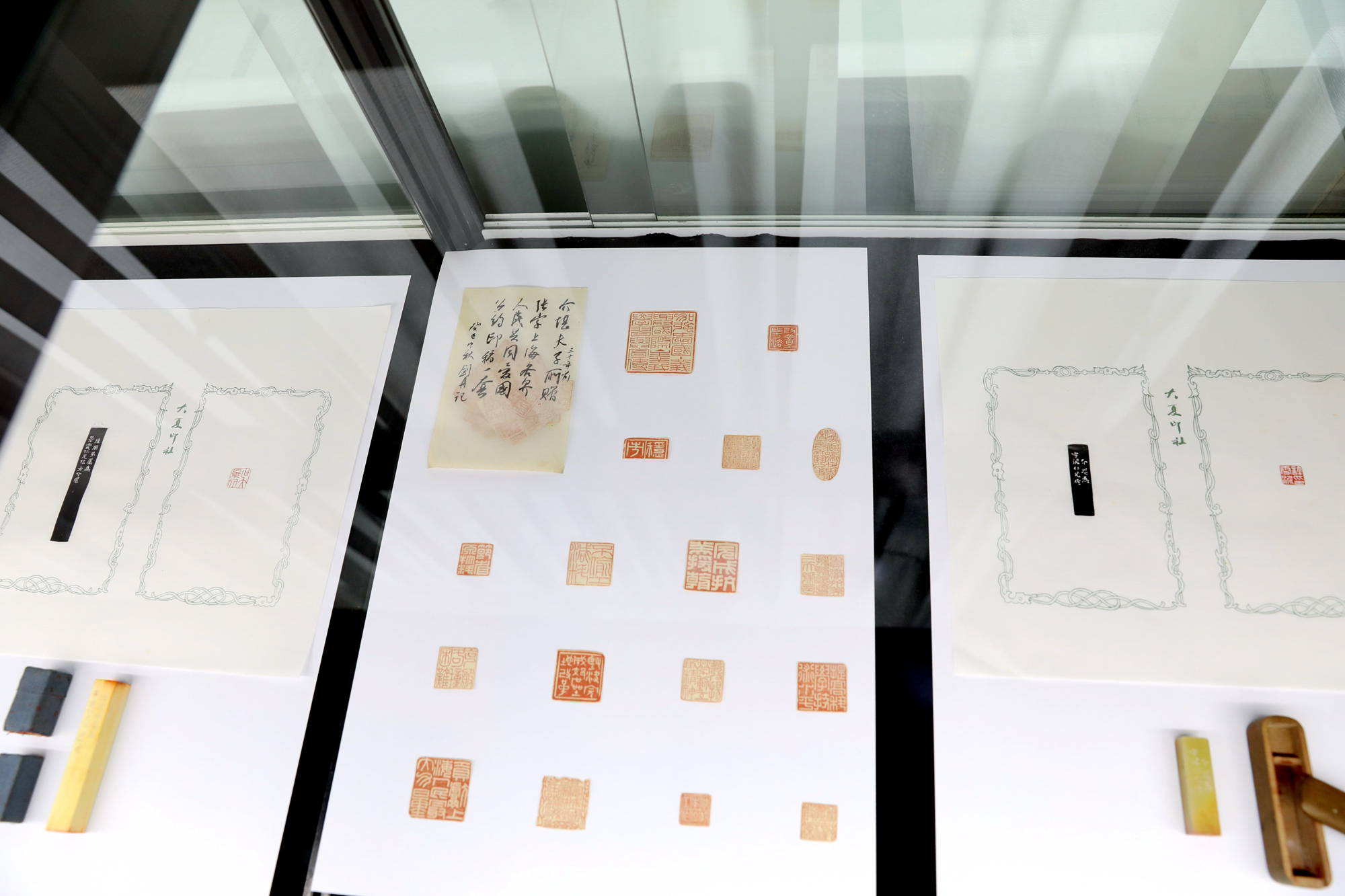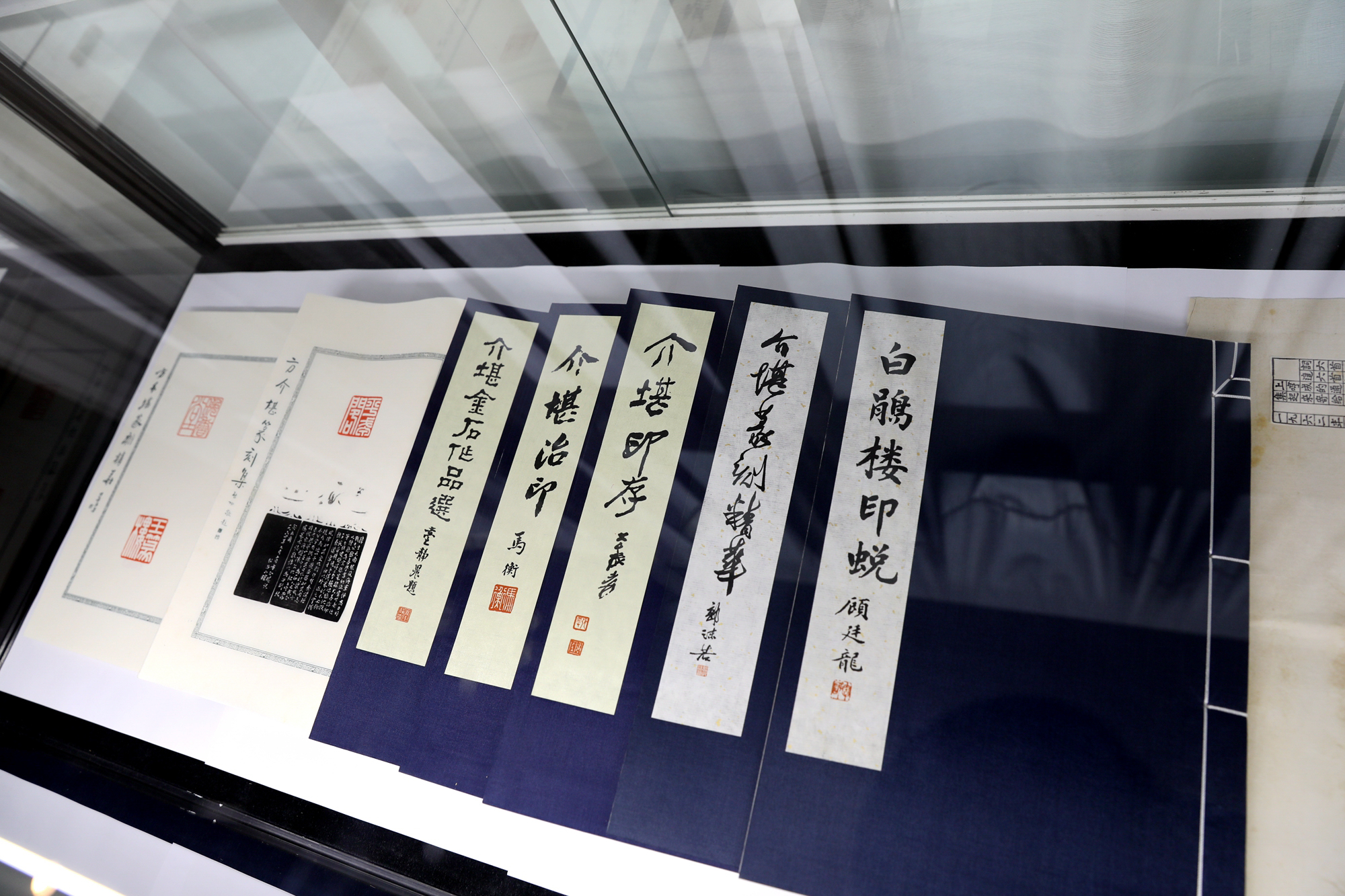 现场还展出了12本方介堪先生原钤本印谱以及10方方介堪先生印章原石等珍贵资料,体现了方先生精湛的技艺以及对创作的严谨态度。尤其是方介堪先生1948年自钤存稿印谱,是难得孤本。其中包括为张大千所刻“潇湘画楼”,一印三稿,更是鲜为人知。