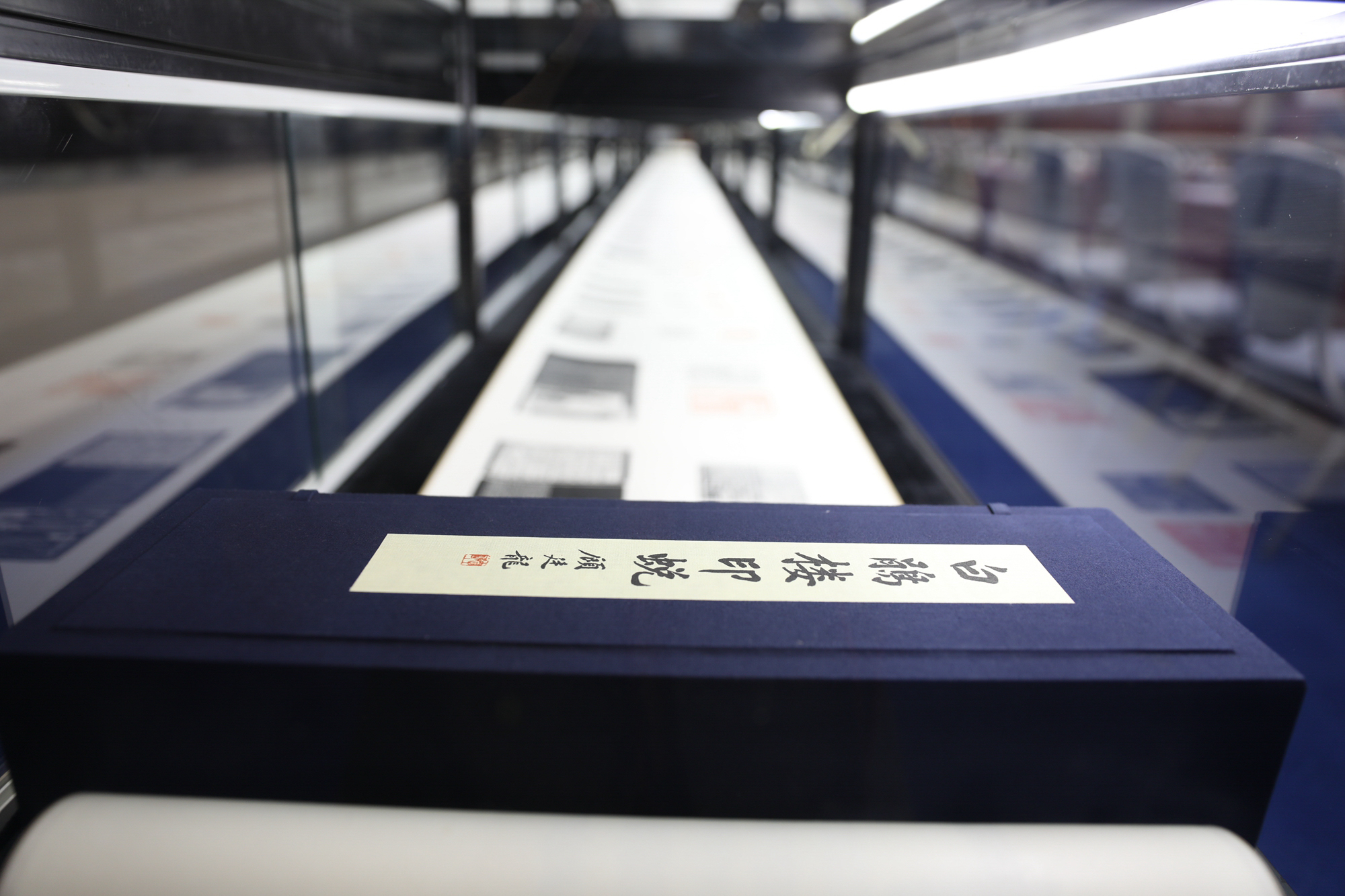研讨会现场,主办方展出的8米长集106方《白鹃楼印蜕手卷》令人叹为观止。该作品是方介堪为华东师大著名历史学教授、古文字学家戴家祥教授所刻印章集成。戴家祥曾获上海市哲学社会科学学术贡献奖,他所著的《金文大字典》获上海市哲学社会科学优秀成果特等奖。方介堪与戴家祥既是同乡又情同手足,在文字学方面相互切磋、互相影响。《白鹃楼印蜕》不仅是两人情谊的见证,也展现了方介堪篆刻风格的全貌。