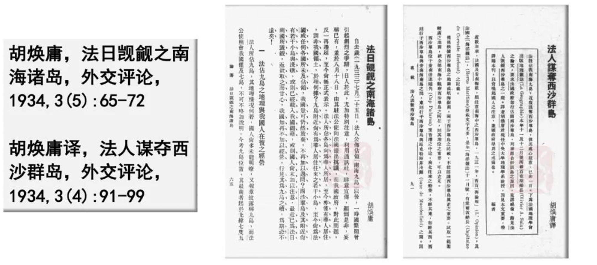 胡焕庸先生面对法日觊觎、侵占我国南海诸岛的恶劣行径,他发文呼吁厘定南海诸岛得名,首次系统论证了南海诸岛属于中国,并最早为“南沙群岛”命名,为我国应对南海和东海主权争端提供了重要证据。