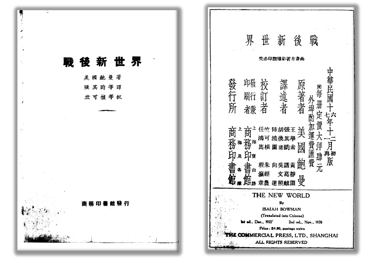 早在1923年,胡焕庸与张其昀等合译《战后新世界》