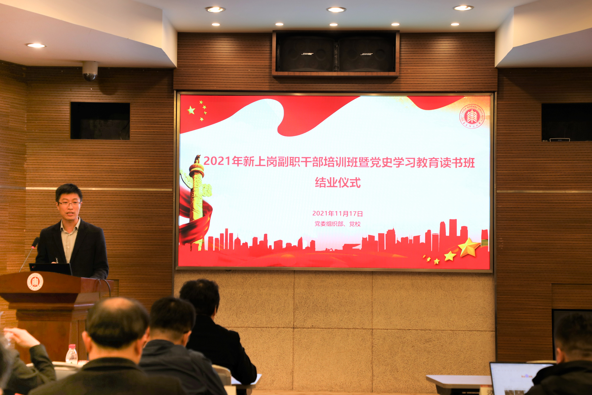 11月17日,2021年新上岗副职干部培训班暨党史学习教育读书班开展了学员论坛“双向交流-管理传帮带”暨结业仪式,活动在中北校区逸夫楼三楼多功能厅举行。