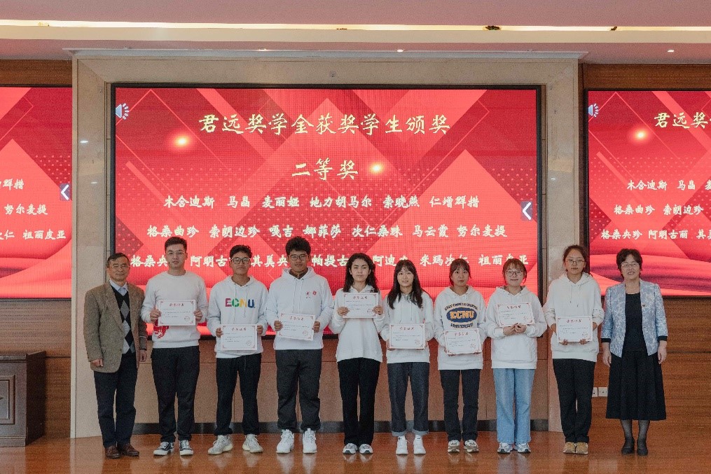 王新燕介绍了君远奖学金评审情况。吴瑞君和张伟为君远一等奖学金和二等奖学金学生颁奖,并向同学们表示祝贺。