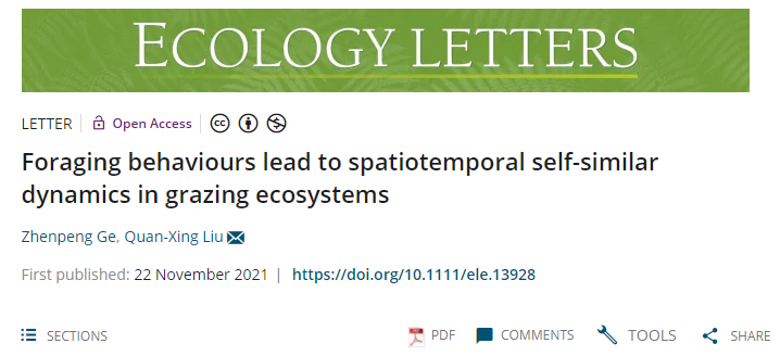 11月23日,国际著名期刊 Ecology Letters 在线刊登了澳门永利皇宫官网入口刘权兴团队题为 Foraging behaviors lead to spatiotemporalself-similar dynamics in grazing ecosystems 的研究成果。该研究提出新的行为自组织理论框架回答了“食草动物的选择觅食行为是否可以下行控制植被的时空格局”这一科学问题。