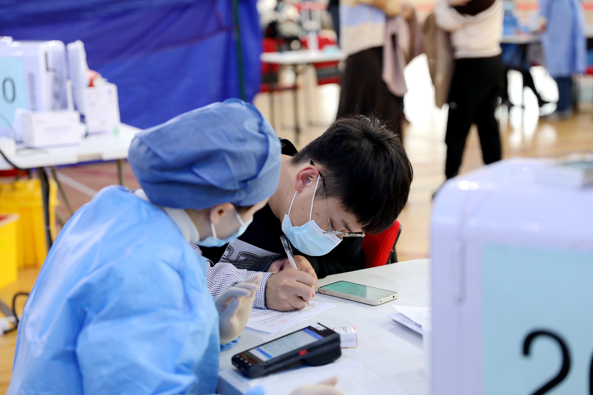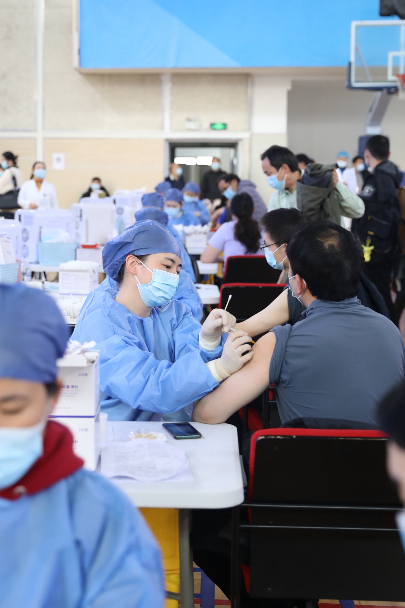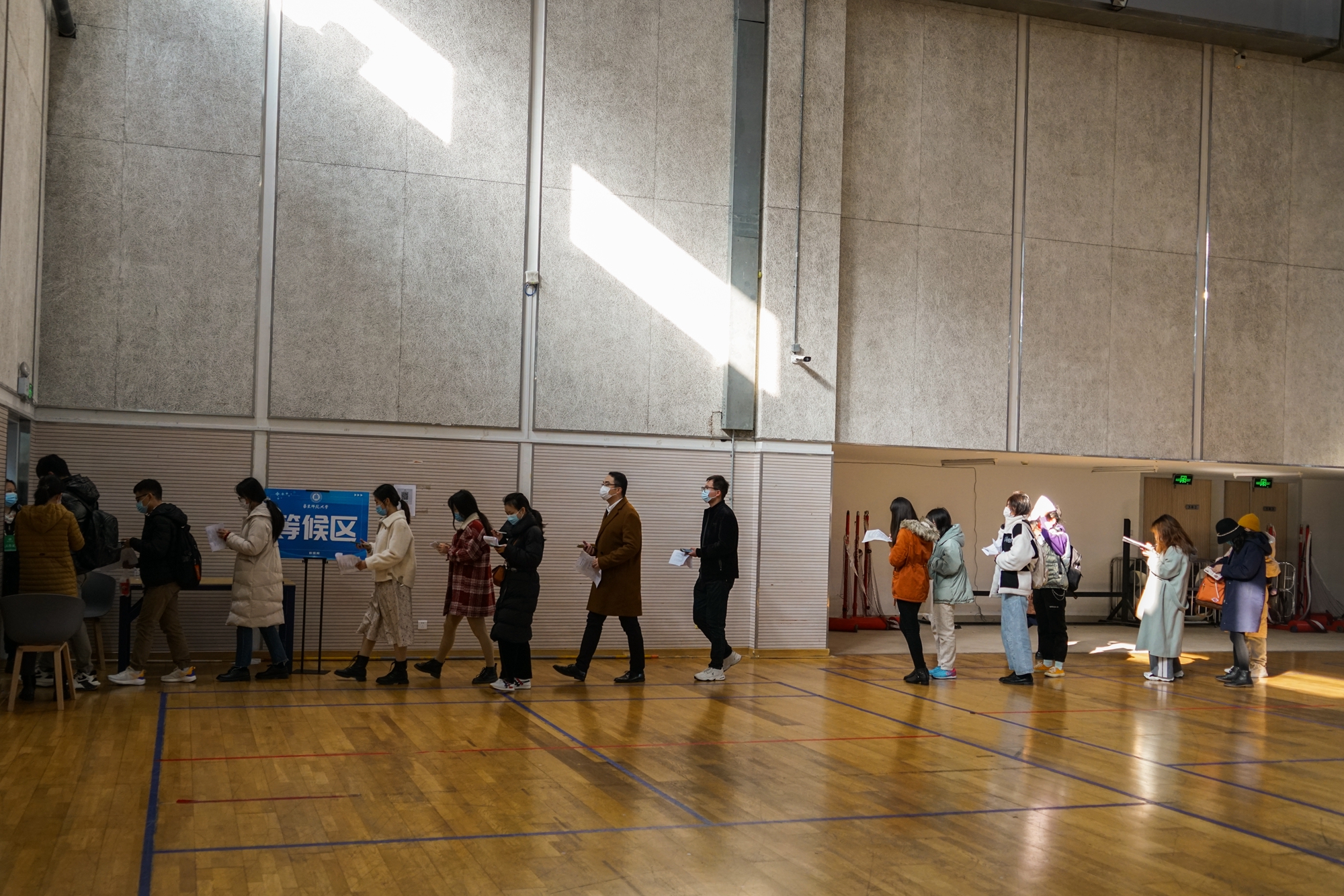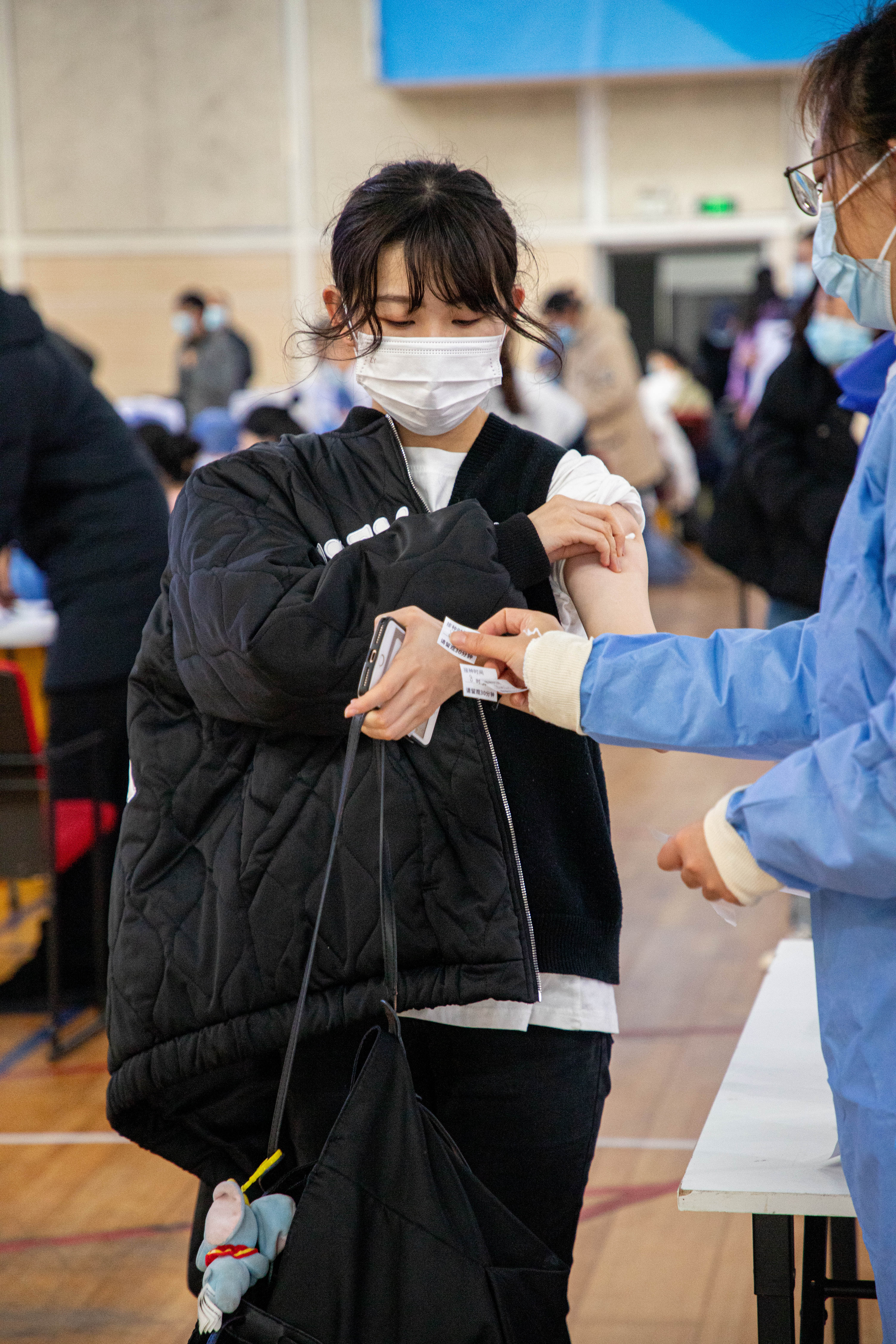 11月30日,虽然大风降温,华东师大闵行校区体育馆人来人往,大家一起为全民免疫屏障助“一臂之力”。为进一步巩固新冠病毒,人群免疫屏障,华东师大按照“知情同意,应种尽种”原则,11月30日和12月1日在闵行校区集中组织开展新冠病毒疫苗加强免疫接种。