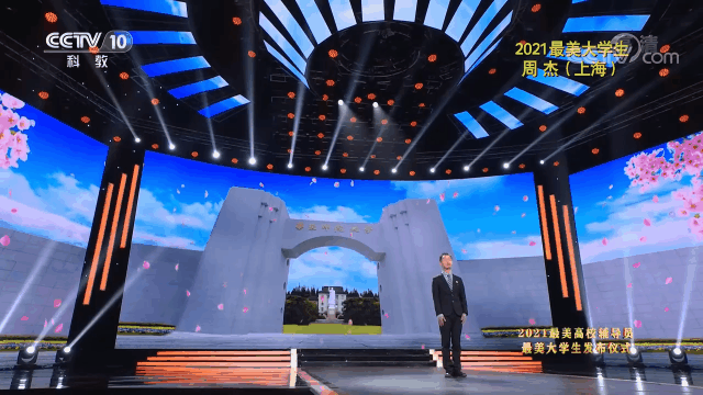 周杰在央视科教频道播出的“闪亮的名字—2021最美高校辅导员 最美大学生”发布仪式中讲述自己的故事