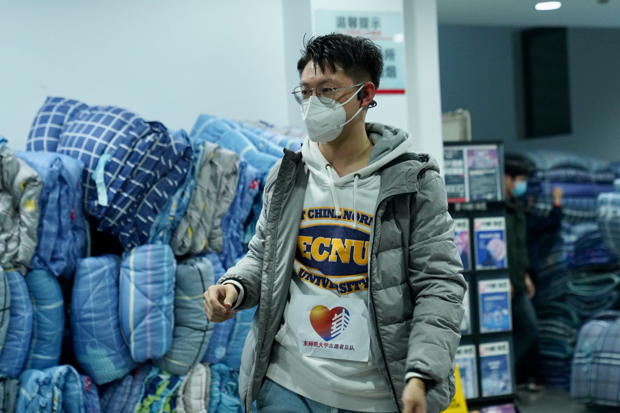 华东师大志愿者总队第一时间召集线上线下志愿者共208名,组成“互助共进志愿者队”,负责线上问题梳理、宣传引导、线下搬运物资、整理床铺等。