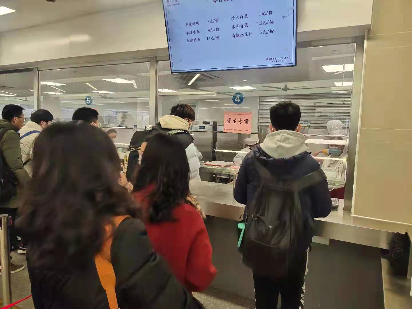 “以考生为中心”,开放校内食堂,在严寒中为考生提供新鲜餐饮和休息场所;考务人员考前全员核酸检测、考场消毒消杀,为考生提供安全的考试环境。
