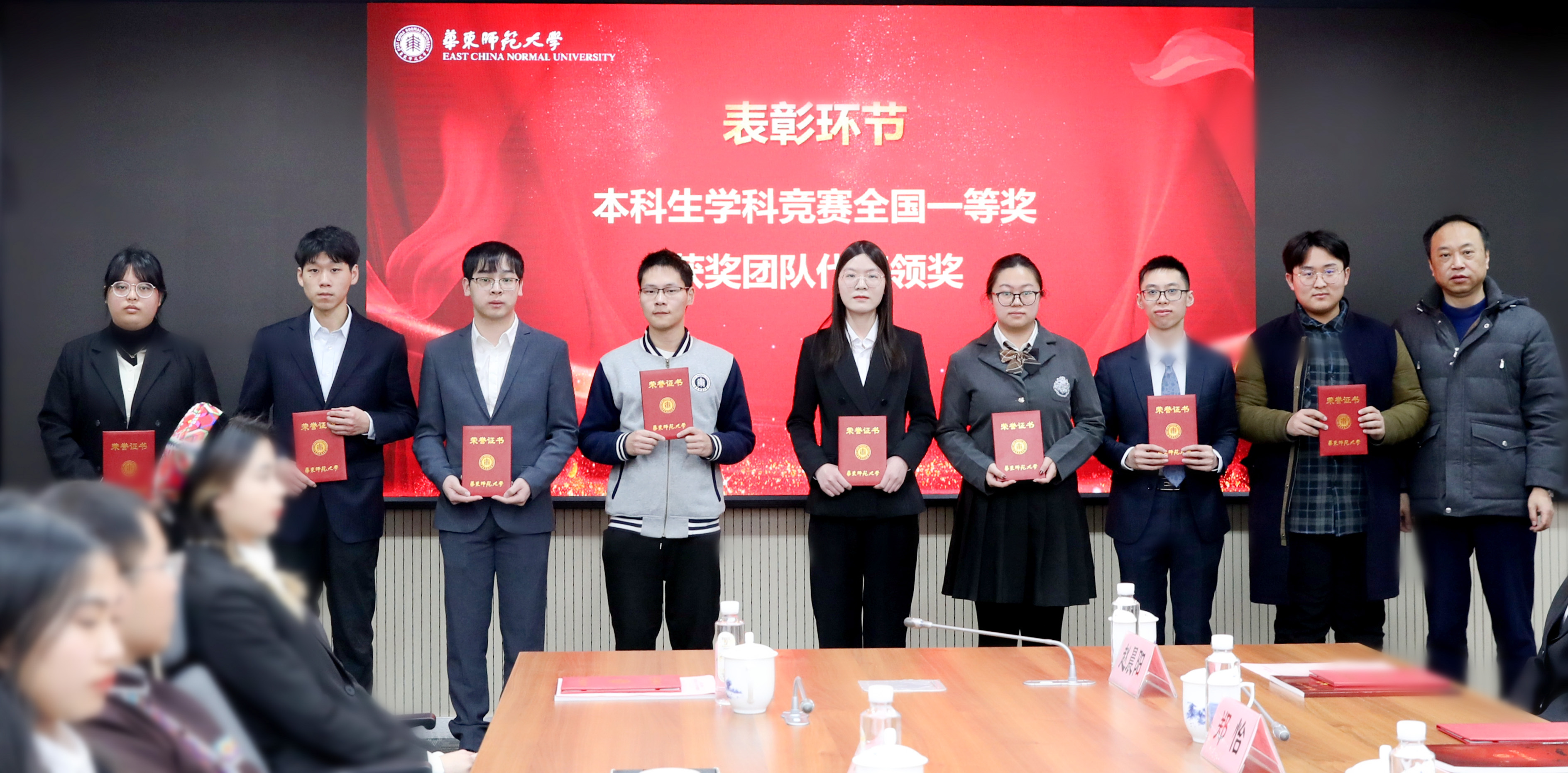 副校长戴立益为各级各类本科生竞赛一等奖的获奖代表颁奖